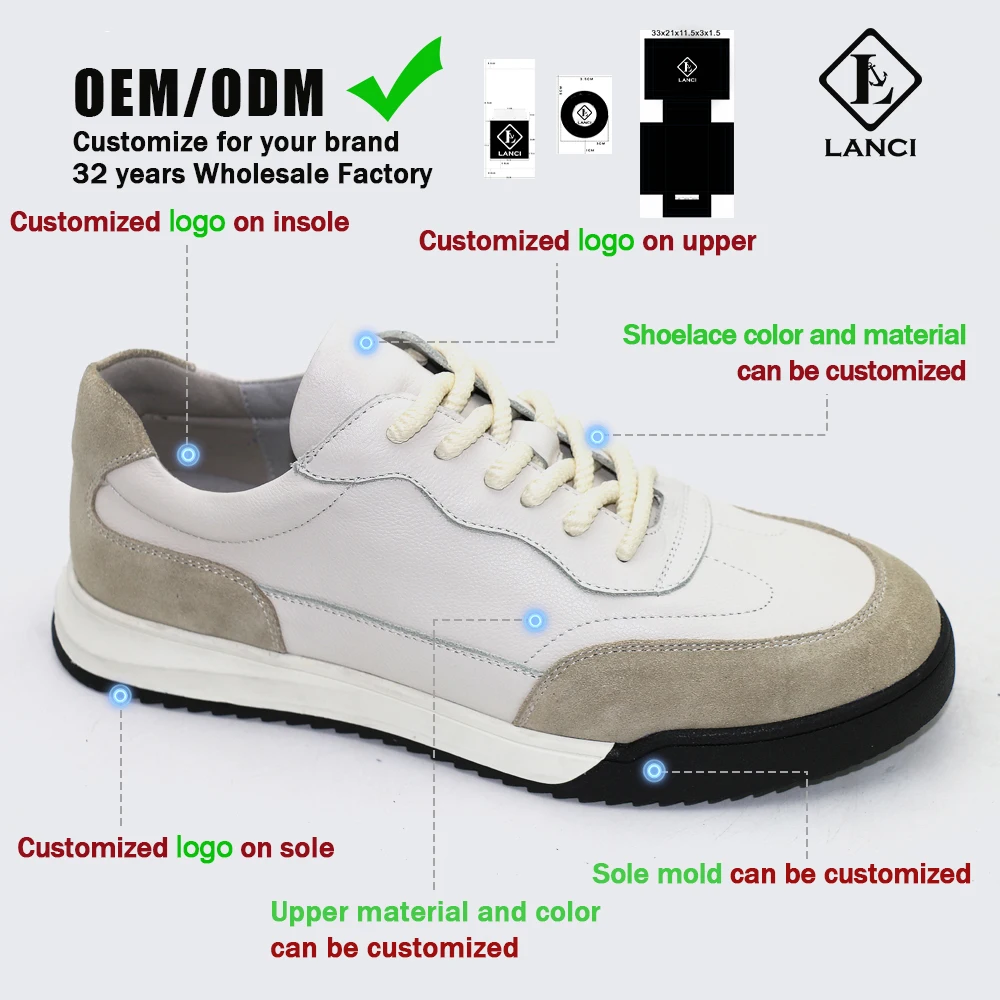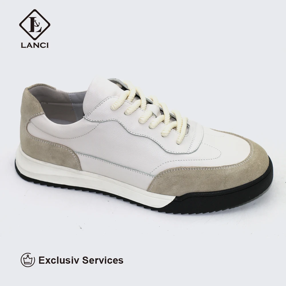 LANCI Sporty Running Shoes Comfortable Genuine Leather Casual Breathable Mesh Anti-Slip Lace-Up Closure Men Pure Leather Shoes