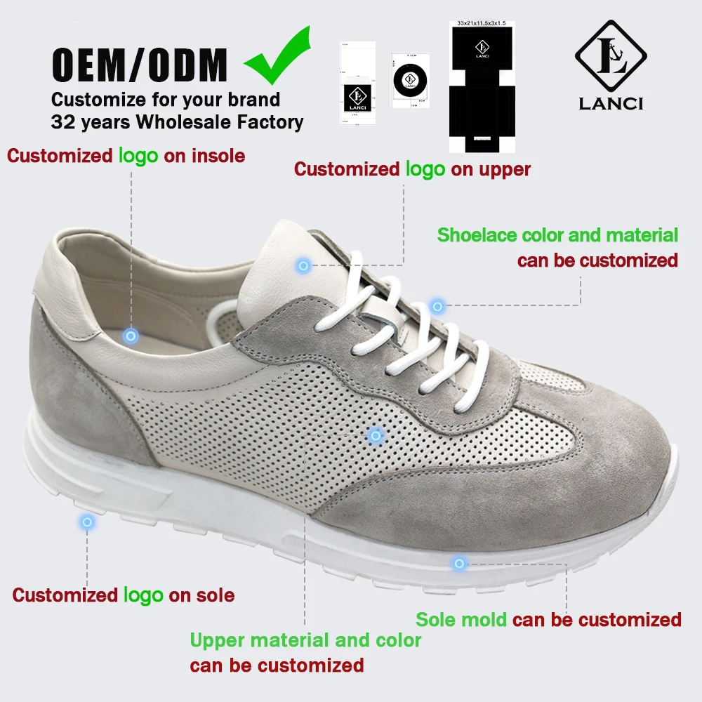 LANCI ODM High Quality Men's Casual Walking Running Shoes Comfortable Anti-Slippery Leather Sneakers Lace-Up Suede Sneakers Men