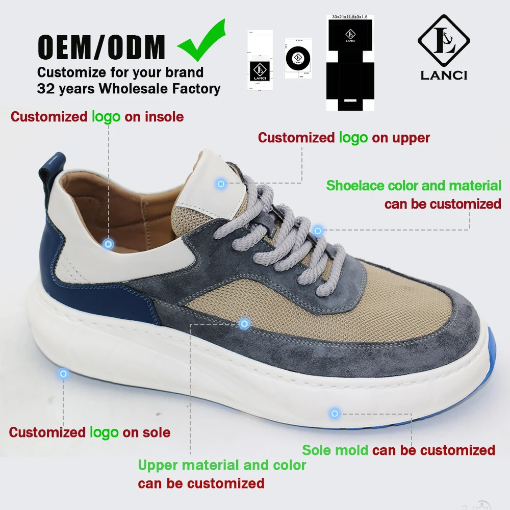 LANCI High Quality Handmade Leather Sneakers Custom Logo ODM Shoe Manufacturer Running Style Rubber Insole Casual Sports Shoes