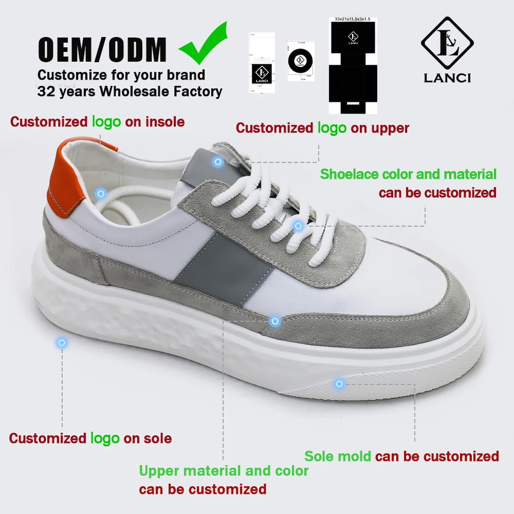 LANCI Manufacturer for Custom Men Shoes Designer Luxury Shoes Sneakers Custom logo White Leather Sneakers