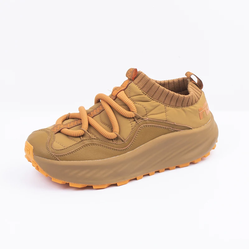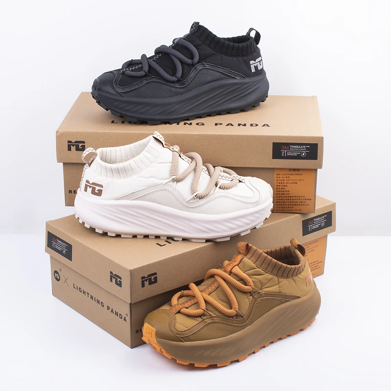Winter Fleece-Lined Plush Lining Waterproof Non-Slip Toe Stretch Fabric Upper Lace-Up Fashion Trend Running Shoes Outdoor Shoes