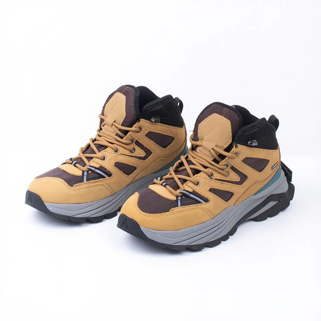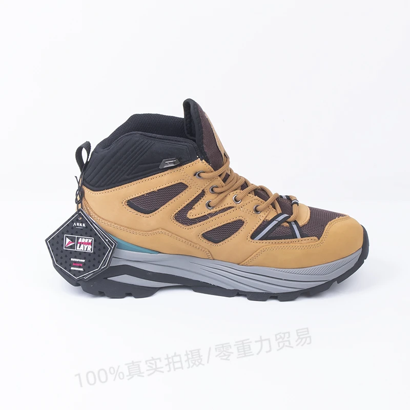 Autumn Winter Cushioned Waterproof Anti Slip Thick Soled Leather Upper EVA Midsole Printed Outdoor Off-Road Hiking Shoes for Men