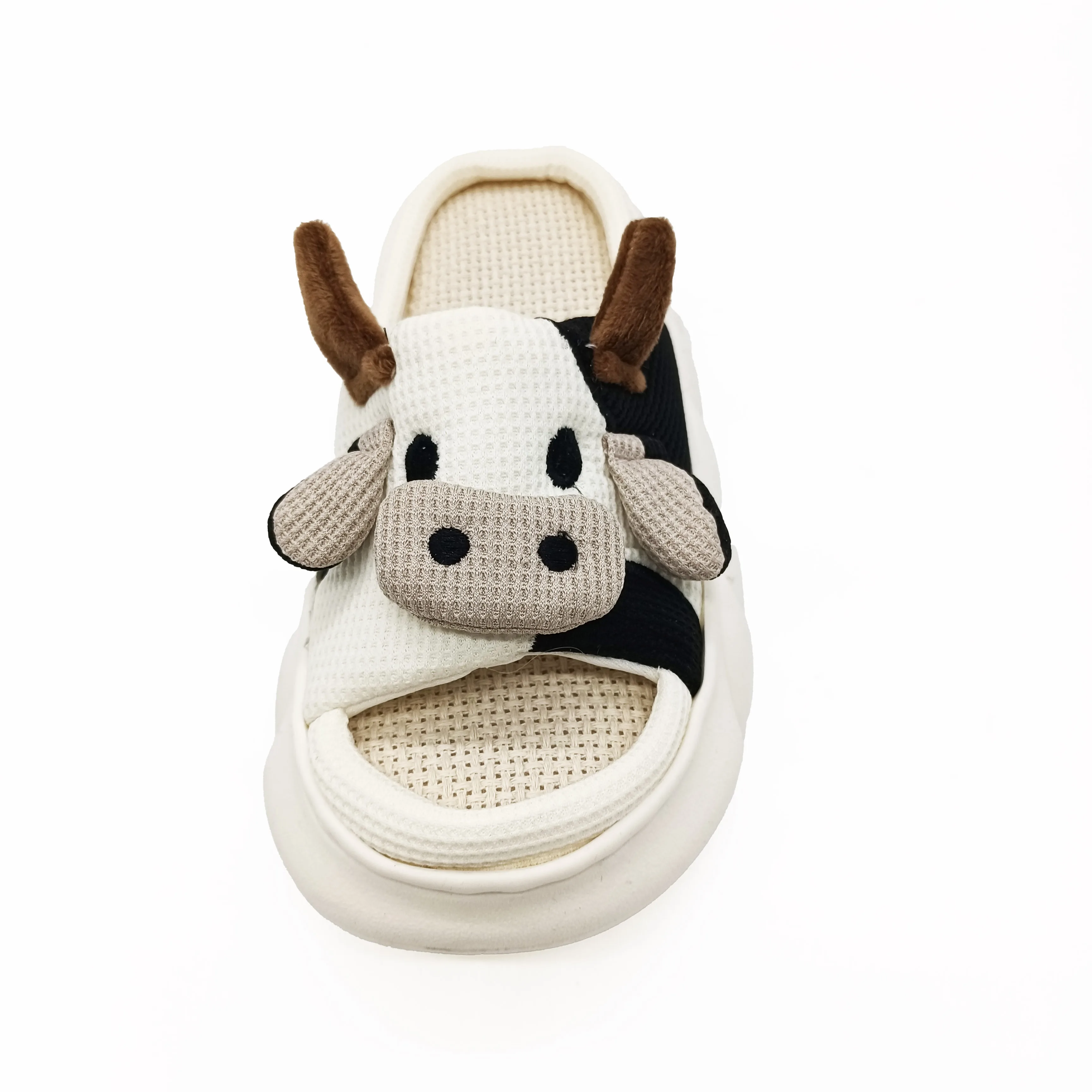 New Style Cute Cartoon Cow Indoor Cotton Linen for Slippers for Ladies Soft Home Slipper with Cushioning for Winter TPR Outsole