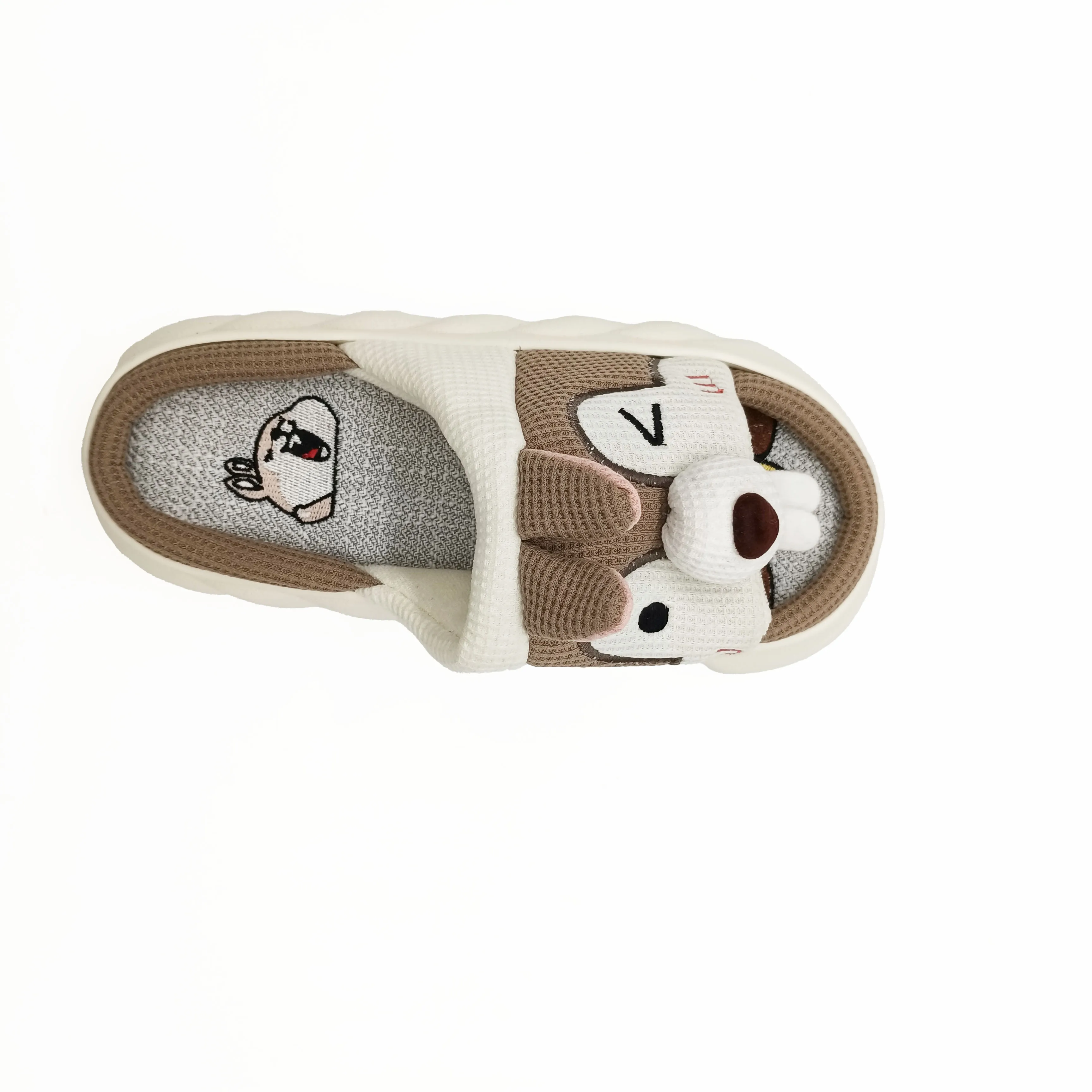 New Arrival Ladies Home for Slippers Cute Animal Linen Indoor Dog Sandals with Soft Cushioning Lightweight for Autumn/Winter