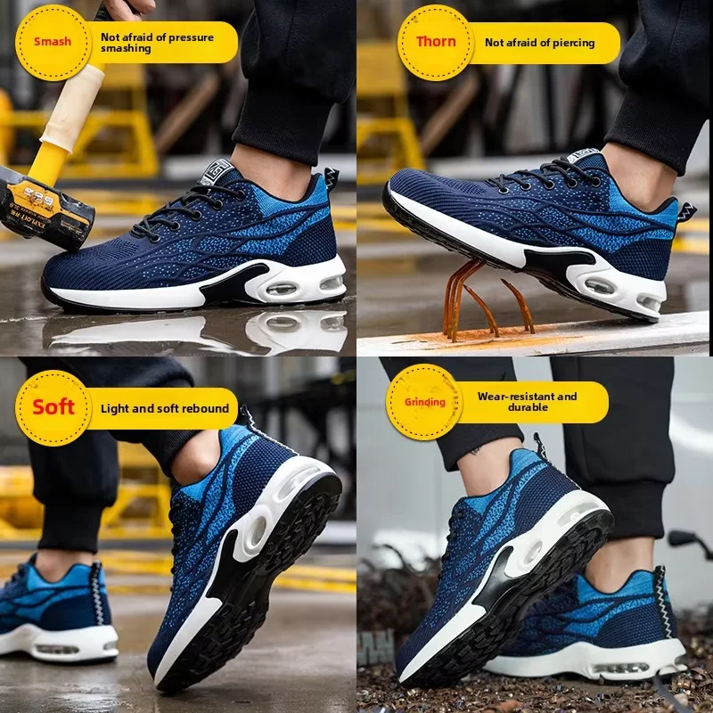 High Quality PU Outsole Sport Safety Shoes with Steel Toe Low Cut Blue-for All Seasons Winter Summer Spring Autumn Construction