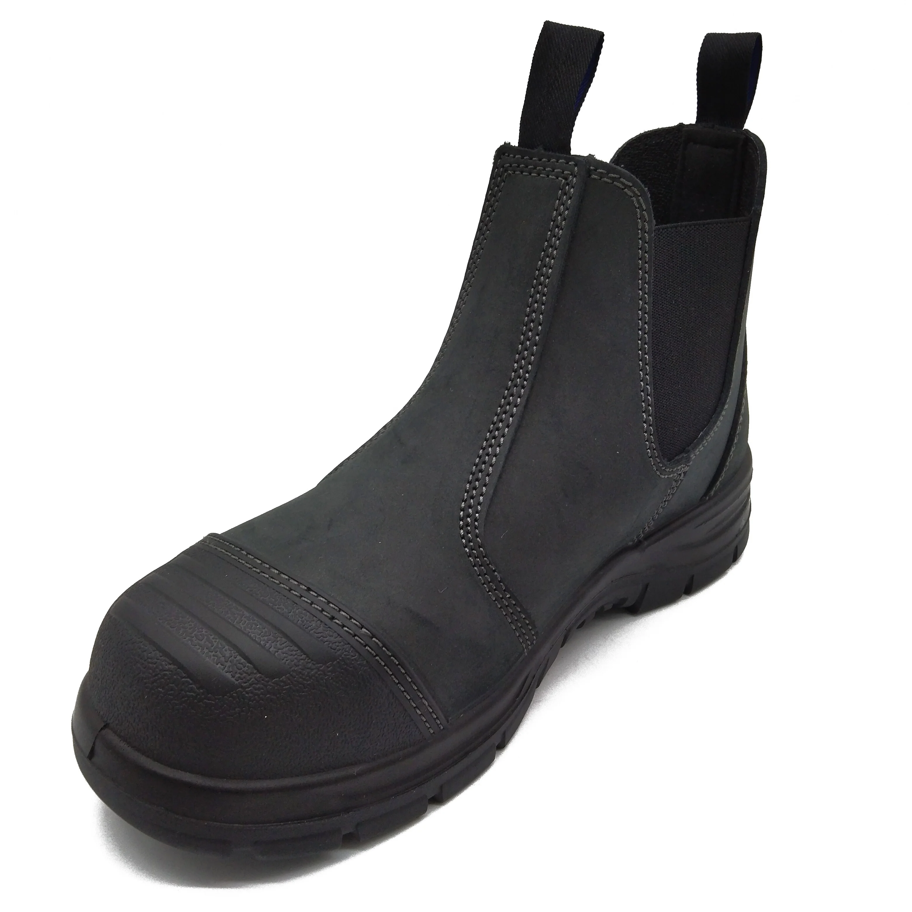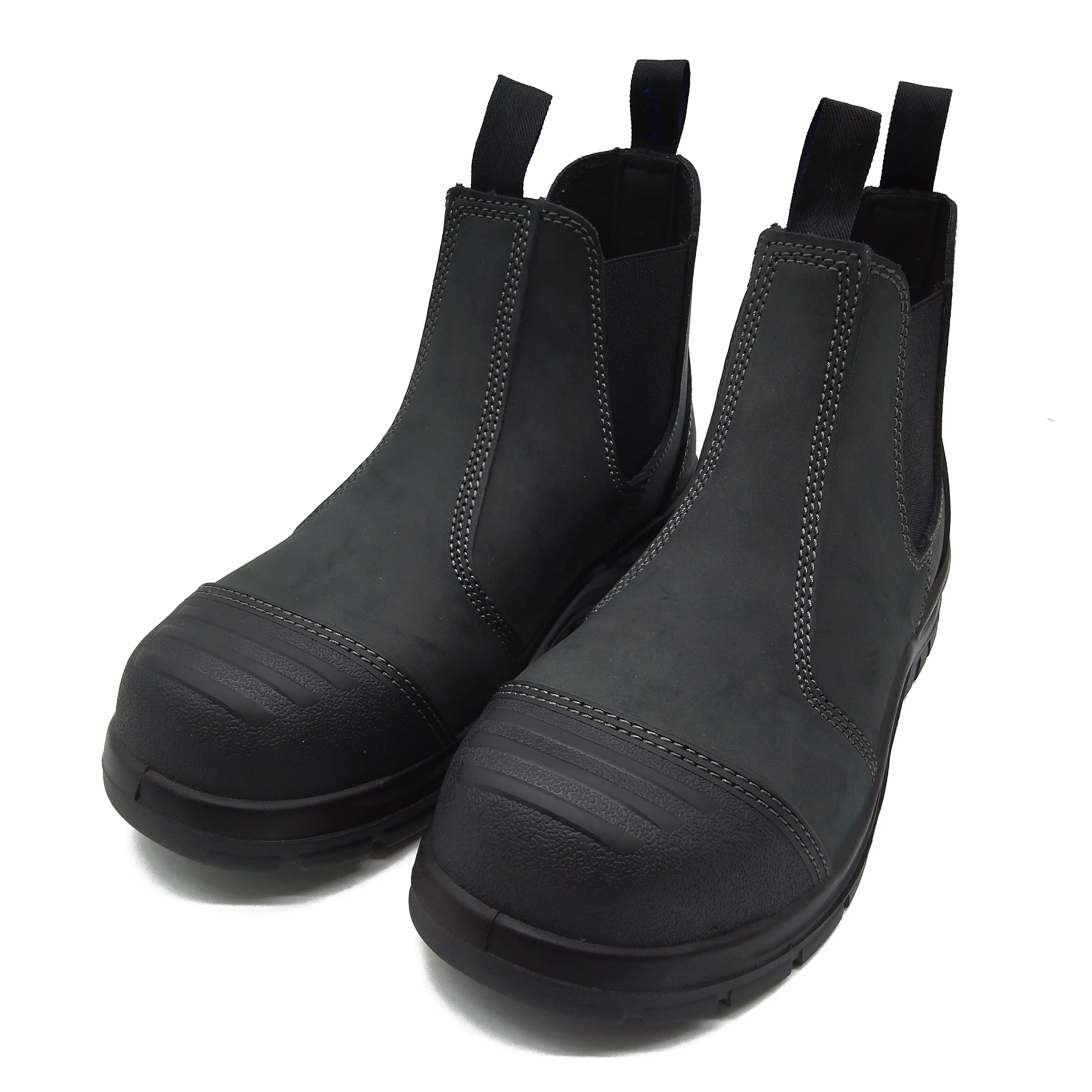 Men's Lightweight Nubuck Leather Safety Shoes Top Layer Water Repellent Non-Slip Work Boots with Steel Toe Slip-On Design
