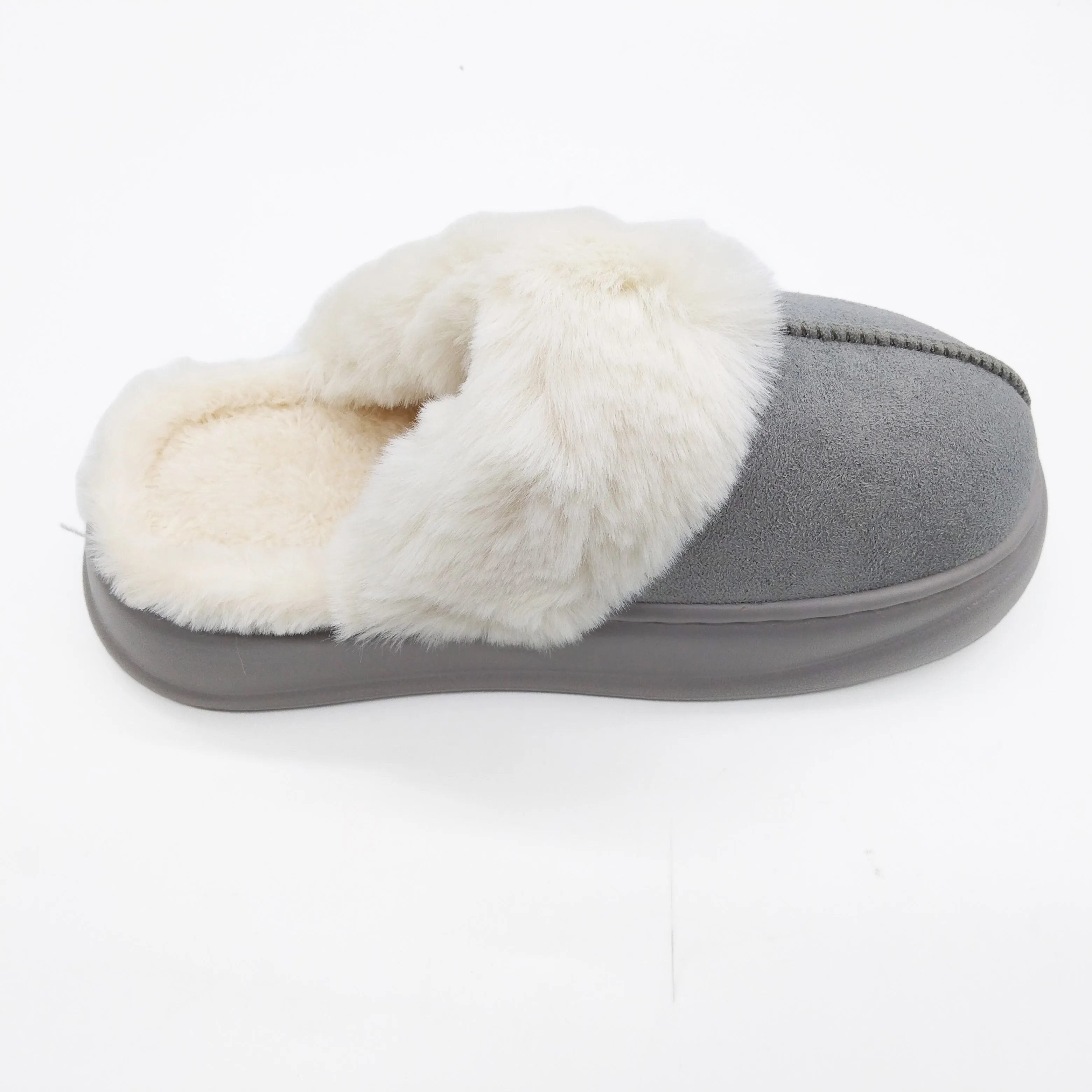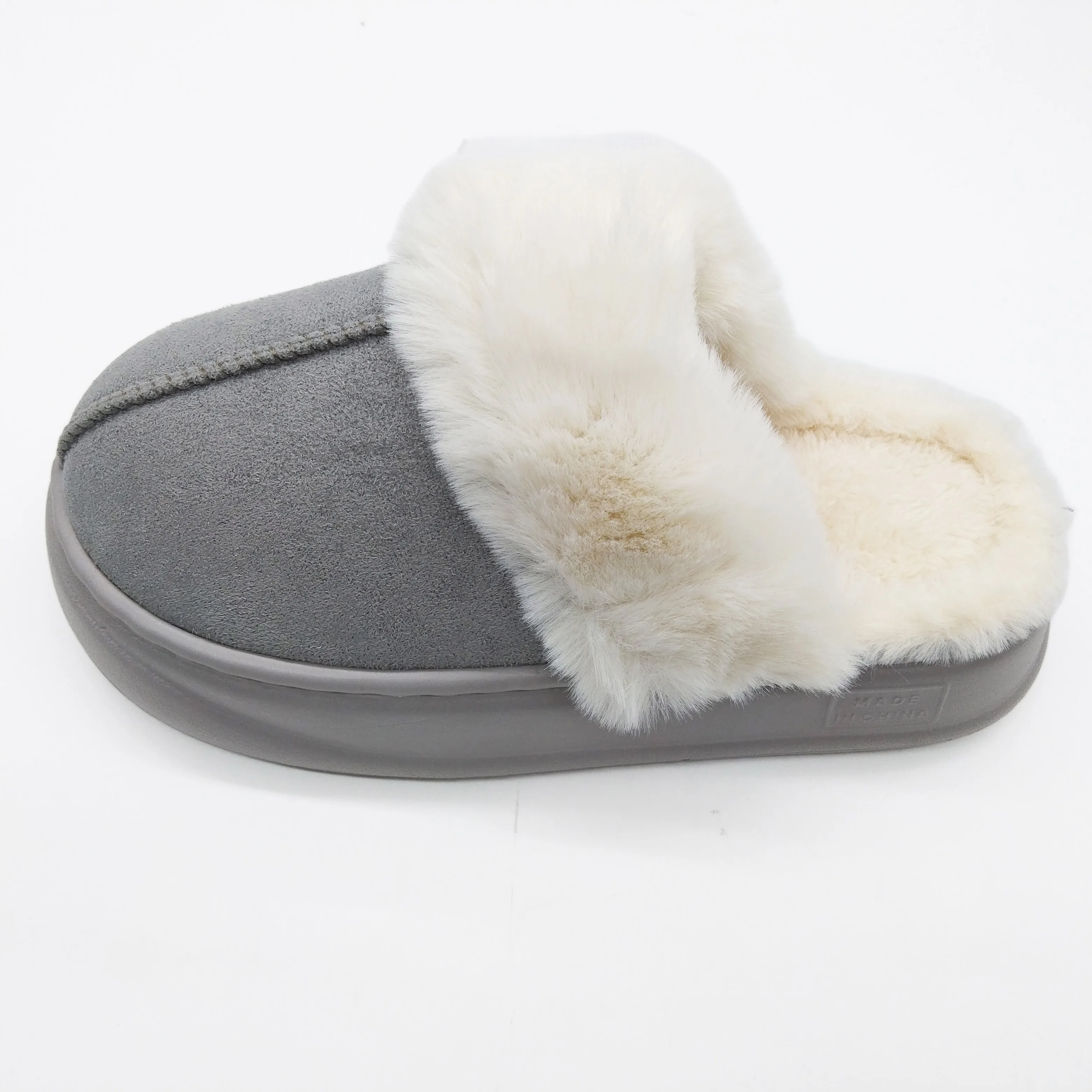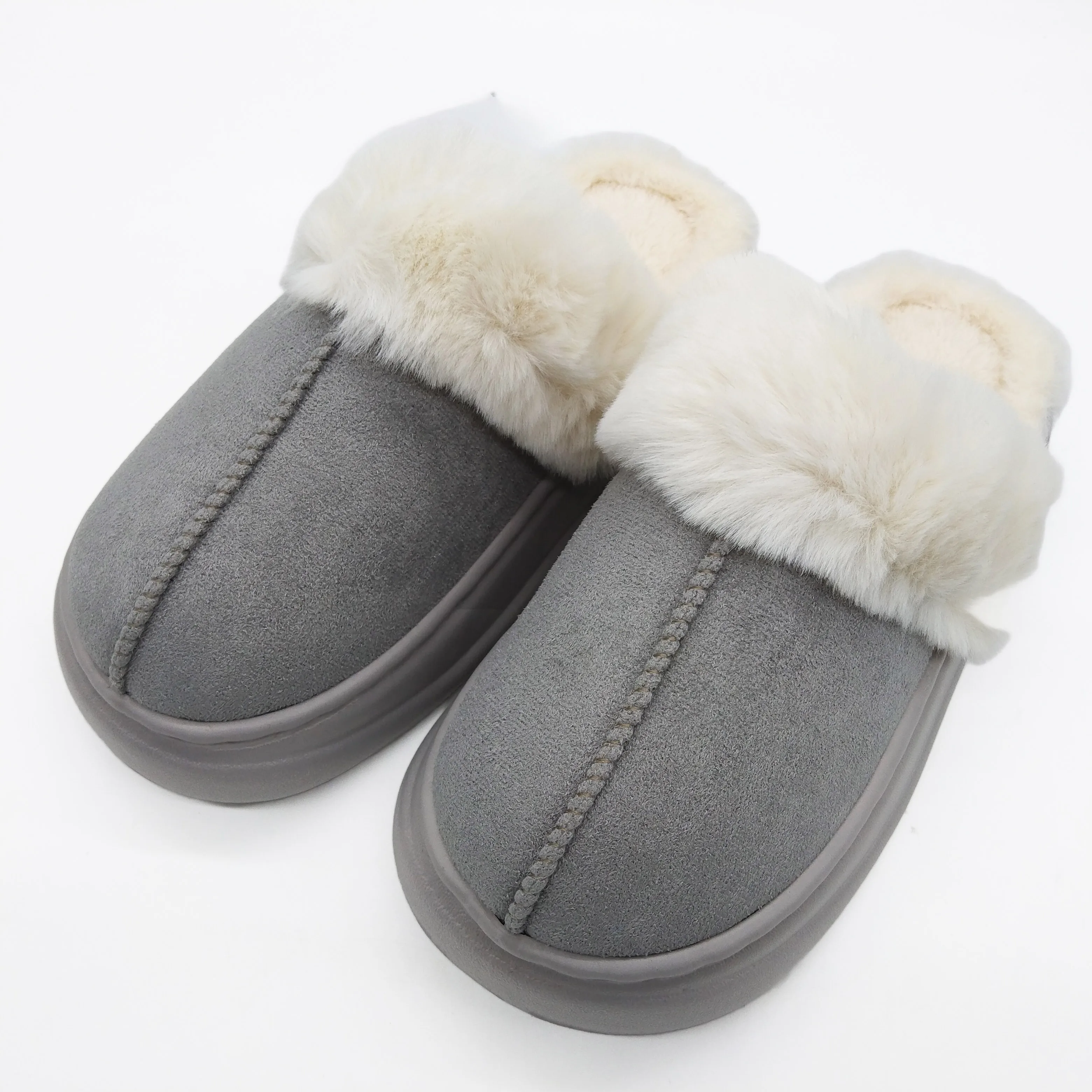 Custom Ladies Grey Faux Fur Indoor for Slippers Soft Simple Style for Winter Spring and Autumn-Home Use