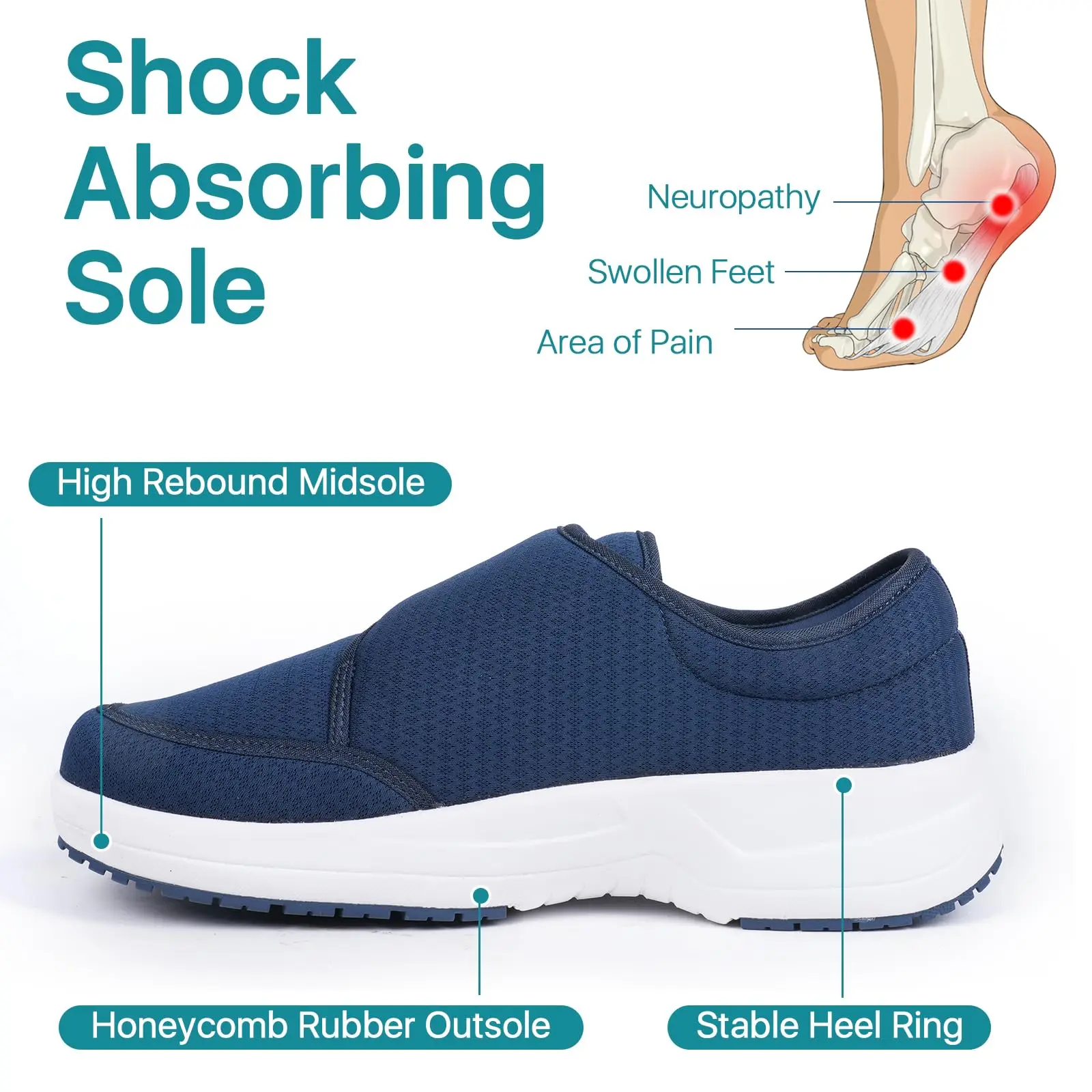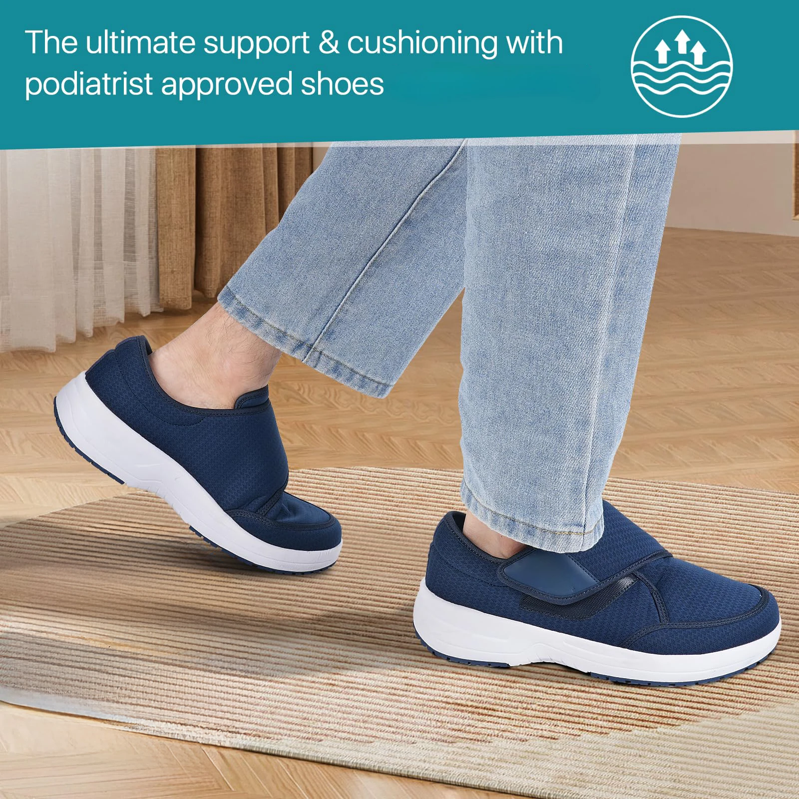Extra Wide Adjustable Slip Diabetic Shoes Blue Orthopedic Walking Shoes Men Women Arch Support Breathable Mesh Upper EVA