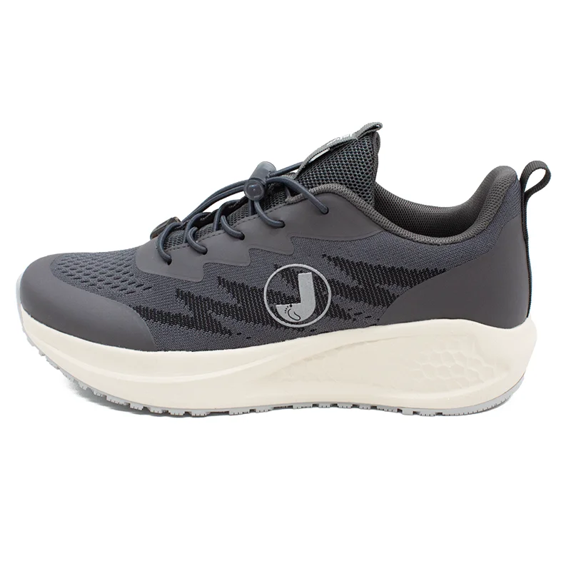 Men's Breathable Fly Knit PU Upper Non Slip Work Shoes with SRC Oil Resistant Rubber Outsole for Kitchen Chef
