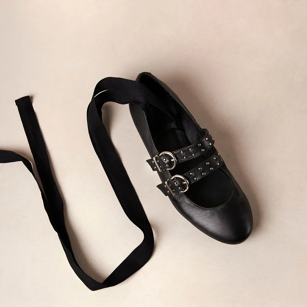 Double Buckle Mary Janes High Top Ballet Shoes Women Flat Sandals With Buckle