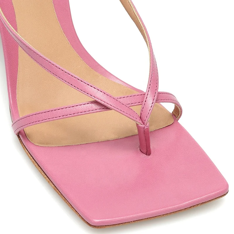 Hot Sale Square Toe High Heels Thong Sandals Buckle Strap Flip Flops Strappy Evening Women Shoes