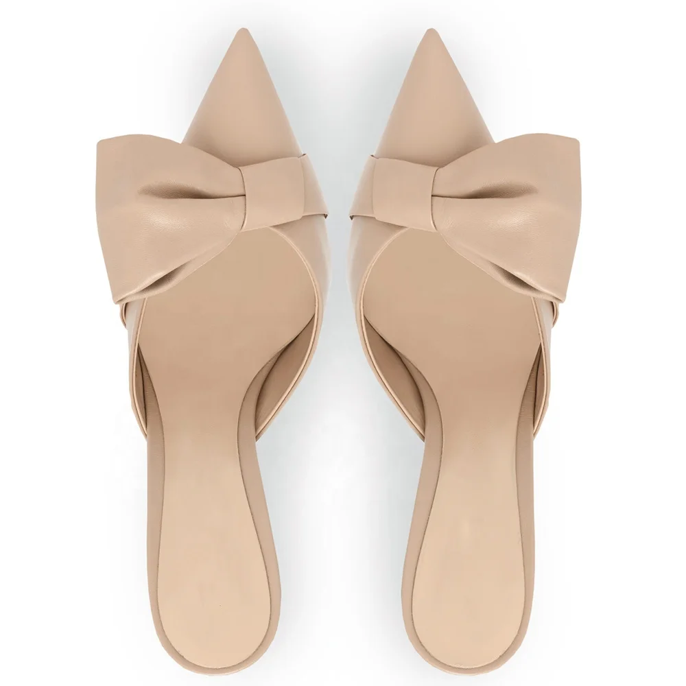 Mule Pump Slip on Closed Toe Sandals Women Half Shoes 2023 New Design Thin Heels With Bow
