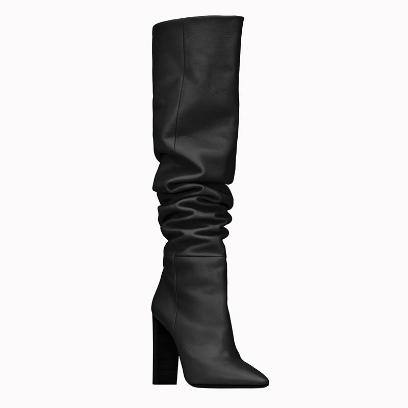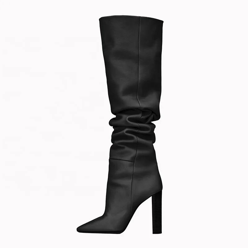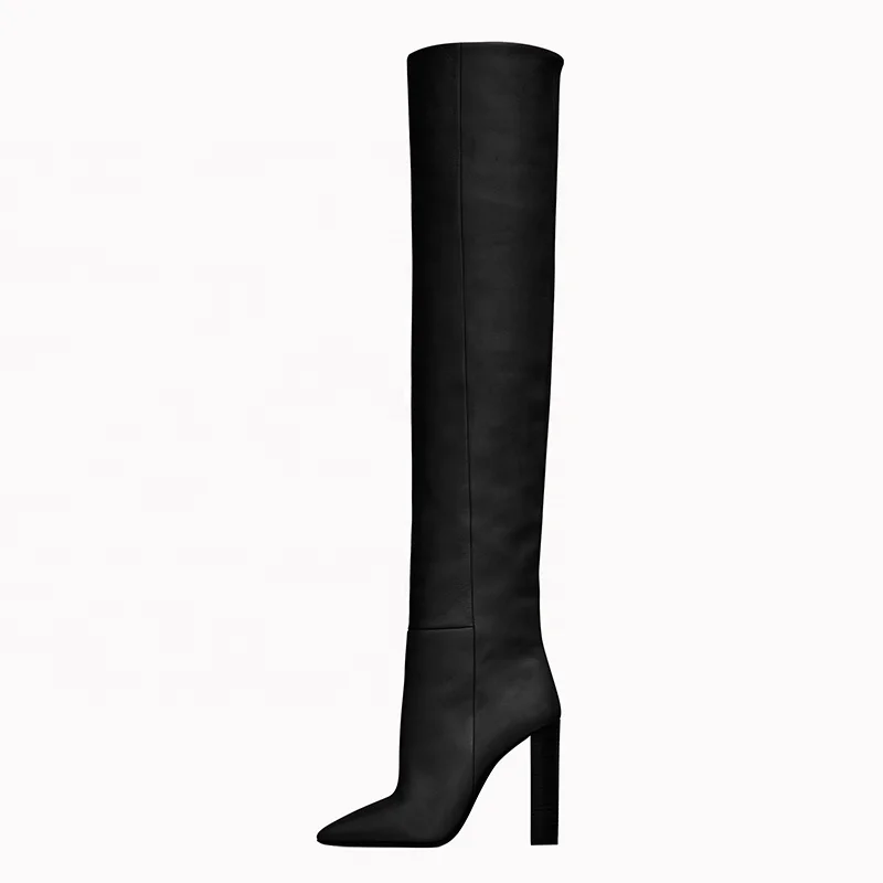 Plus Size Pointed Toe Boot for Women High Heel Black Over the Knee Boots