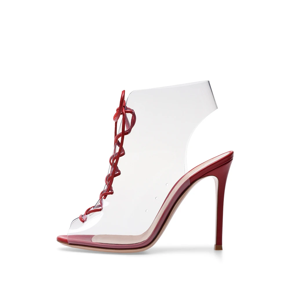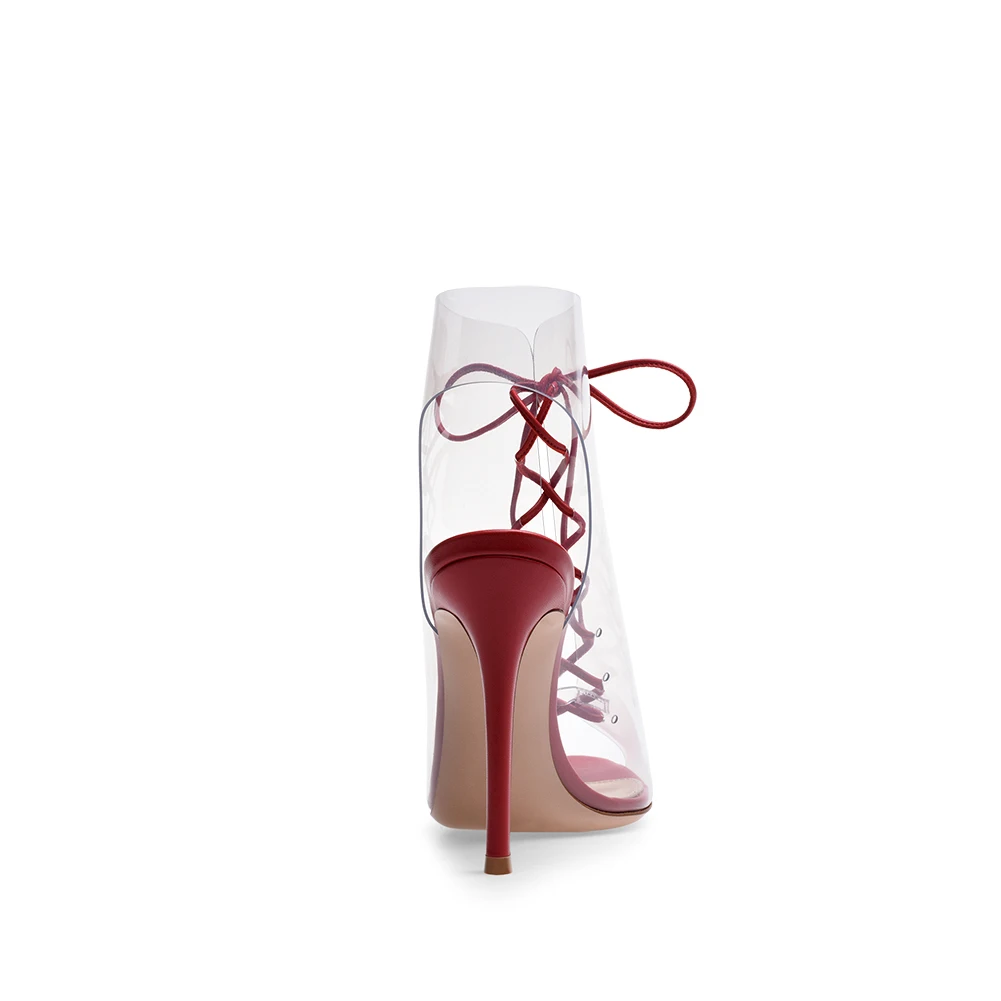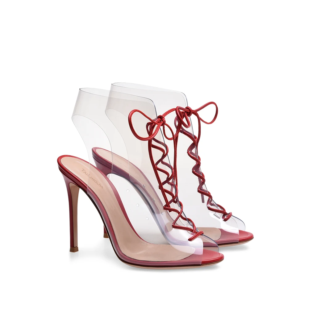 Wholesale Women Shoes Sexy Dress Heels 2018 Stiletto Summer Shoes PVC High Heel Sandals Peep Toe Lace up Transparent Slingbacks