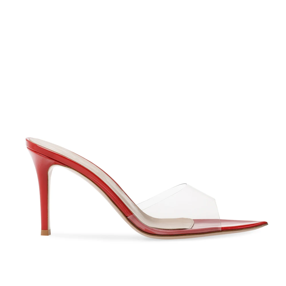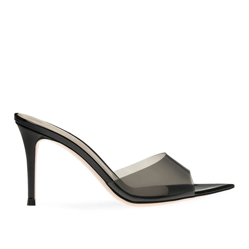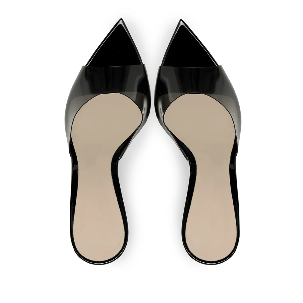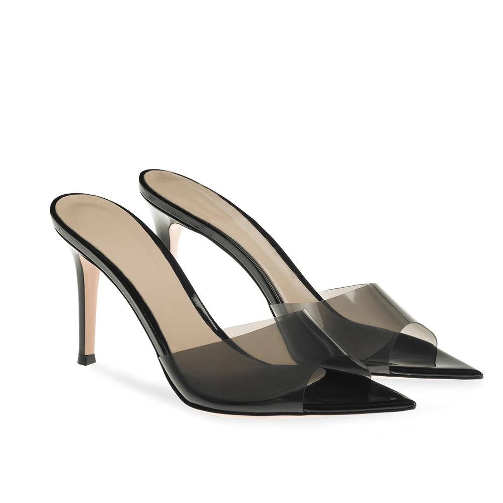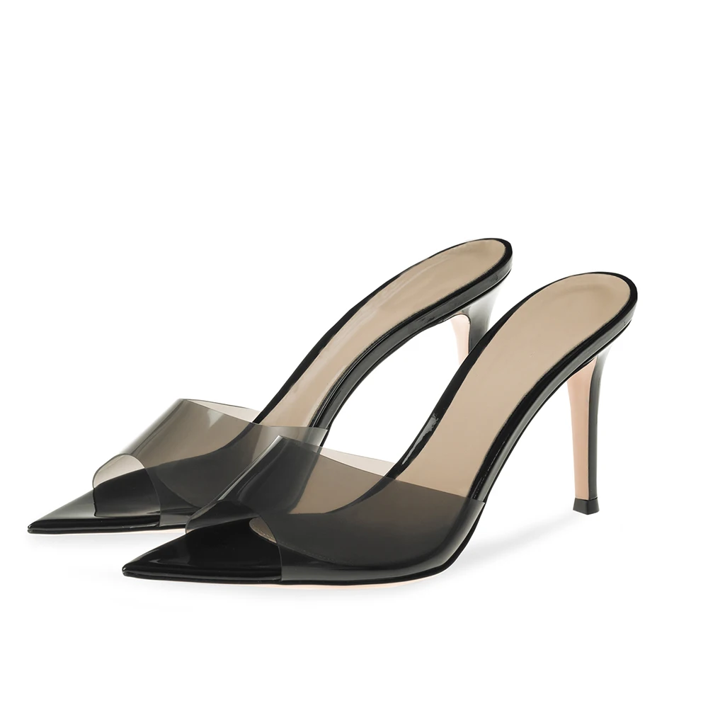 Pointed Toe Transparent PVC High Heels Mules Sandals for Women