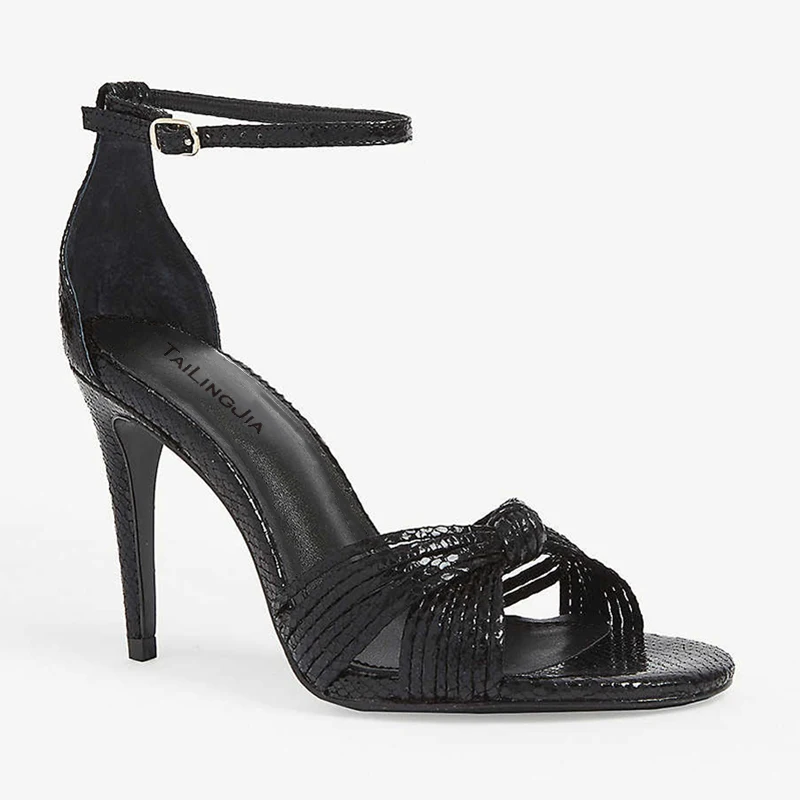 2020 Sexy Snake Patent Leather Women Knot Party Footwear Stiletto Buckle Strap High Heels Sandals