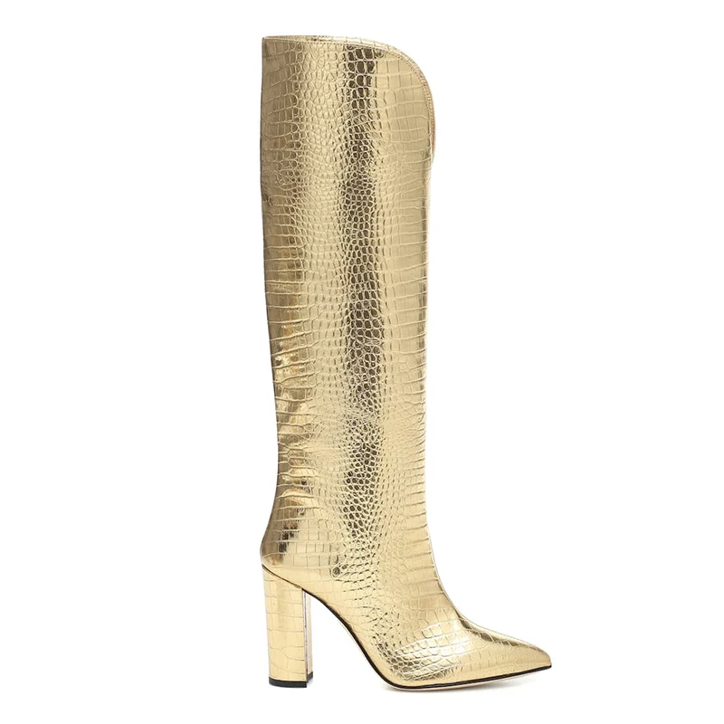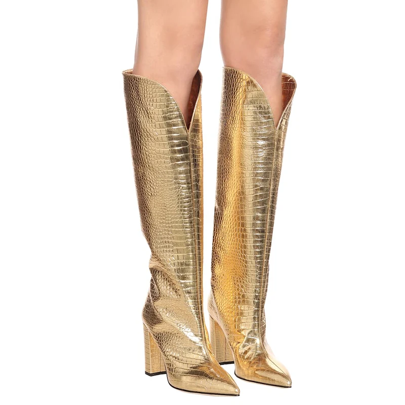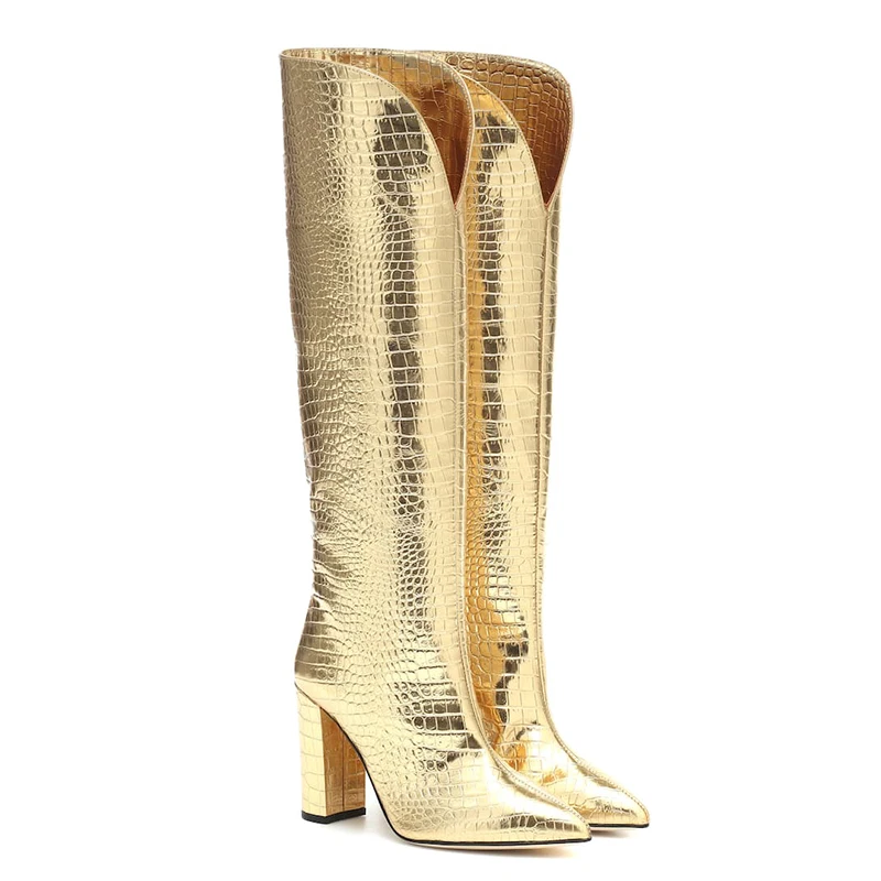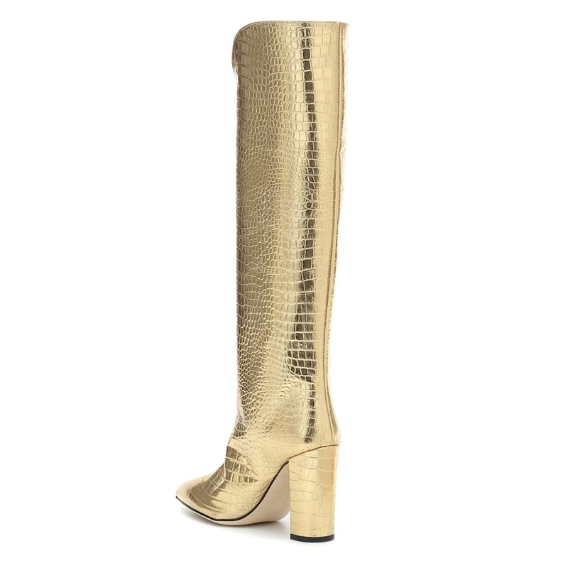 China Factory Handmade Wholesale Quality Fashion Chunky Heel Large Size Knee High Boots