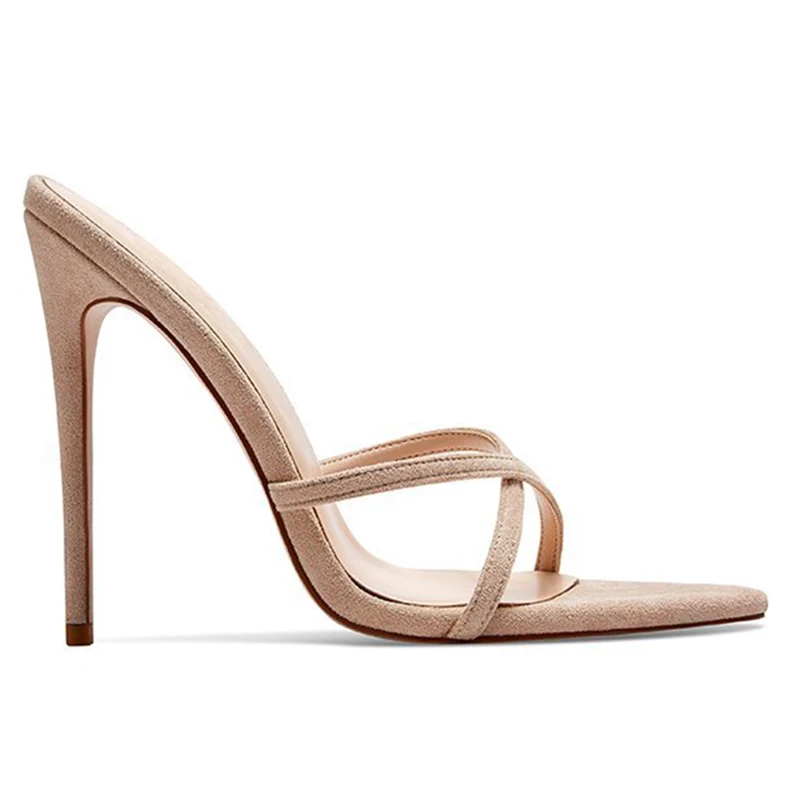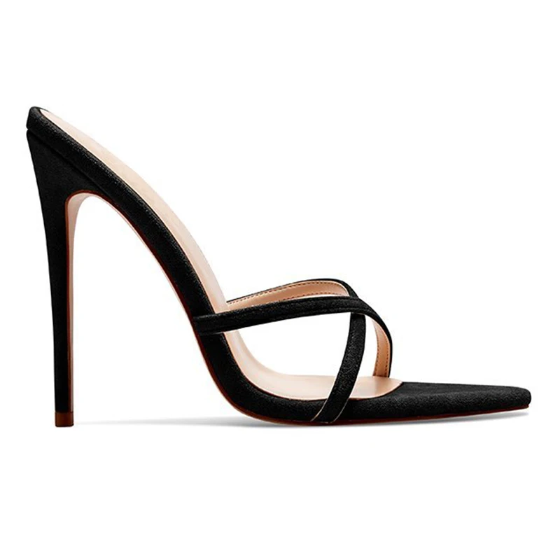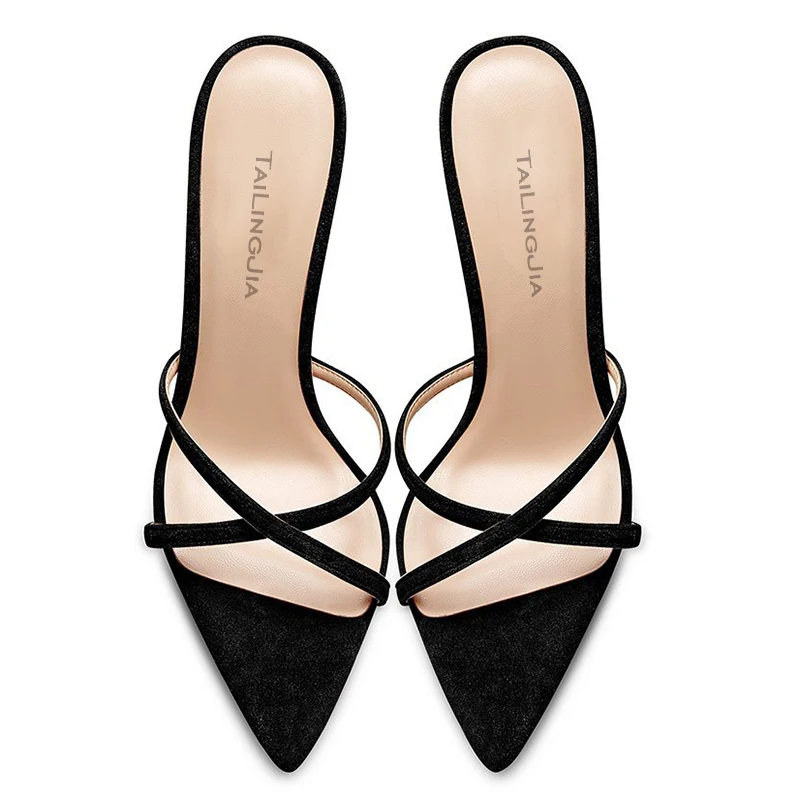 Elegant Thin Heel Ladies Shoes Pointed Toe Mules Cross Strap Stiletto High Heels Slide Sandals Women Slippers