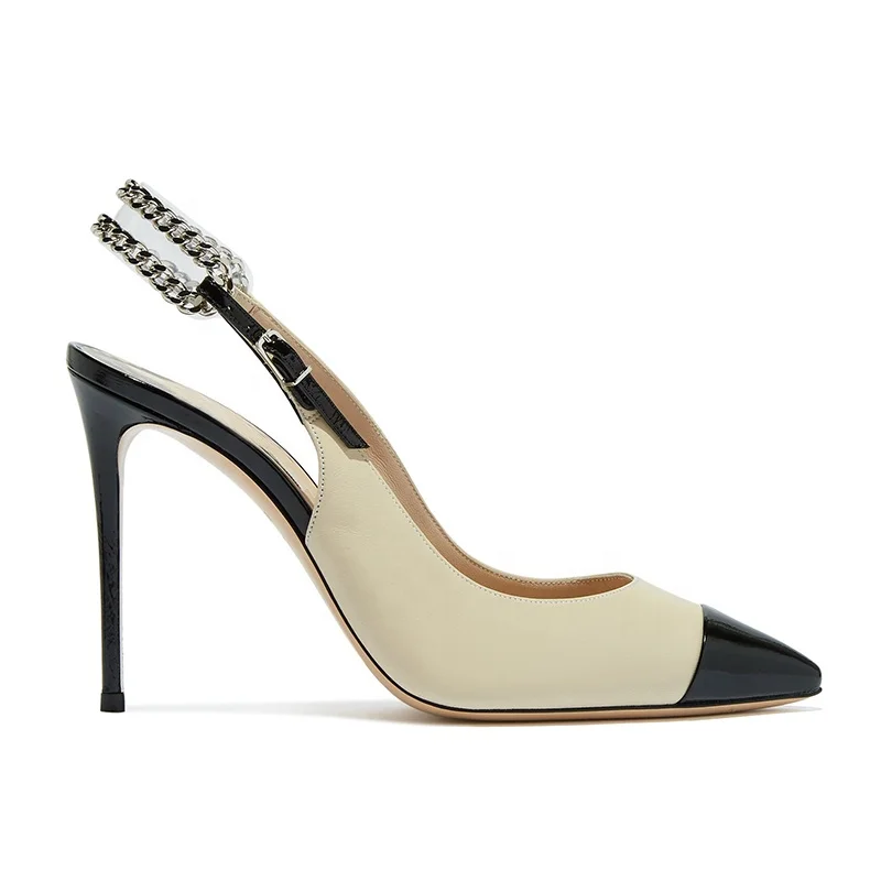 2023 Women Pointed Toe Metal Chain Slingbacks Stiletto High Heels OL Office Party Pumps