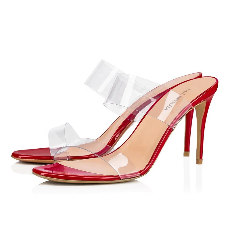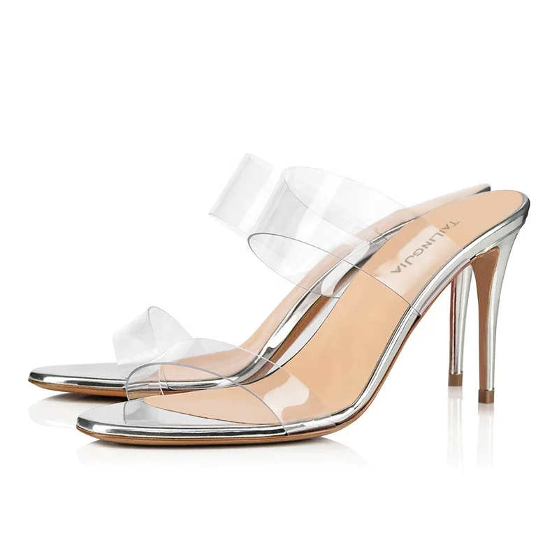 Women's High Heel Height Increasing Open Toe Spring Mules Thin Clear PVC Heels