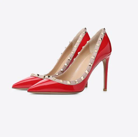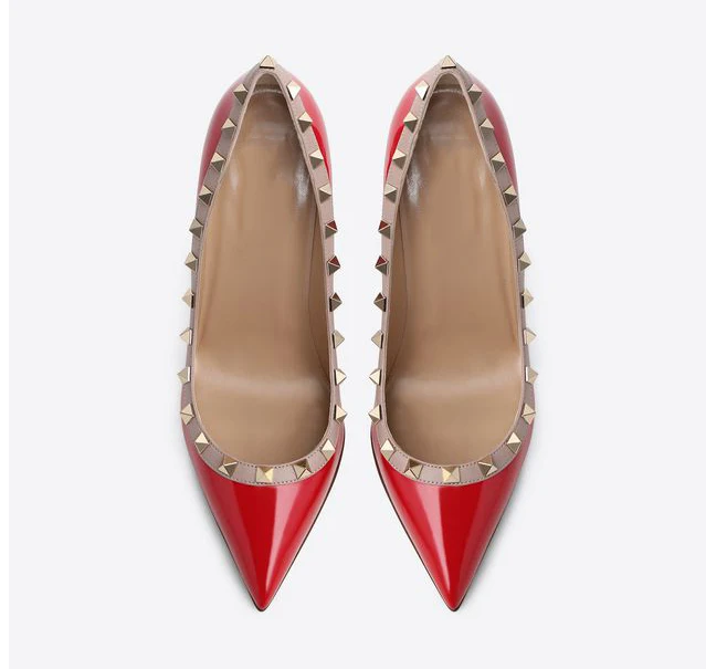 Tailingjia 2019 Custom Brand Fashion Rivet Pointed Toe Pumps Shoes Studs Ladies High Heel Shoes Sexy Women Pumps Shoes