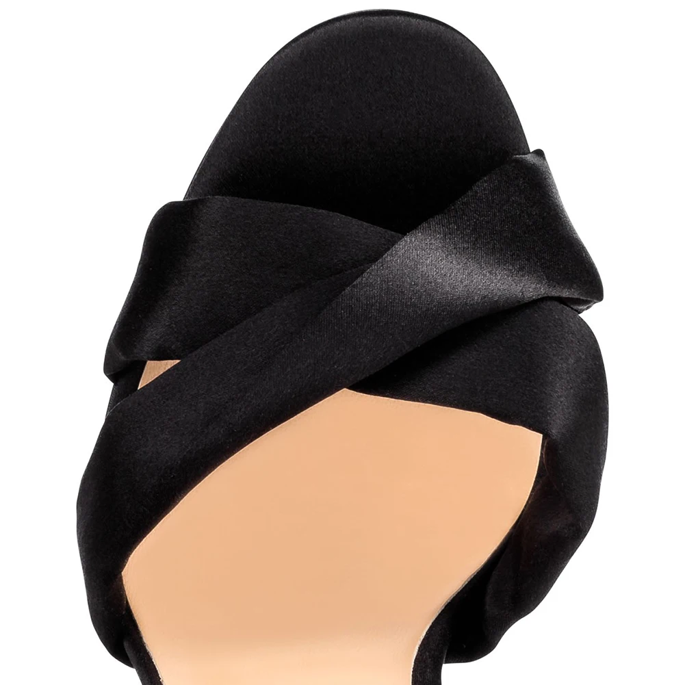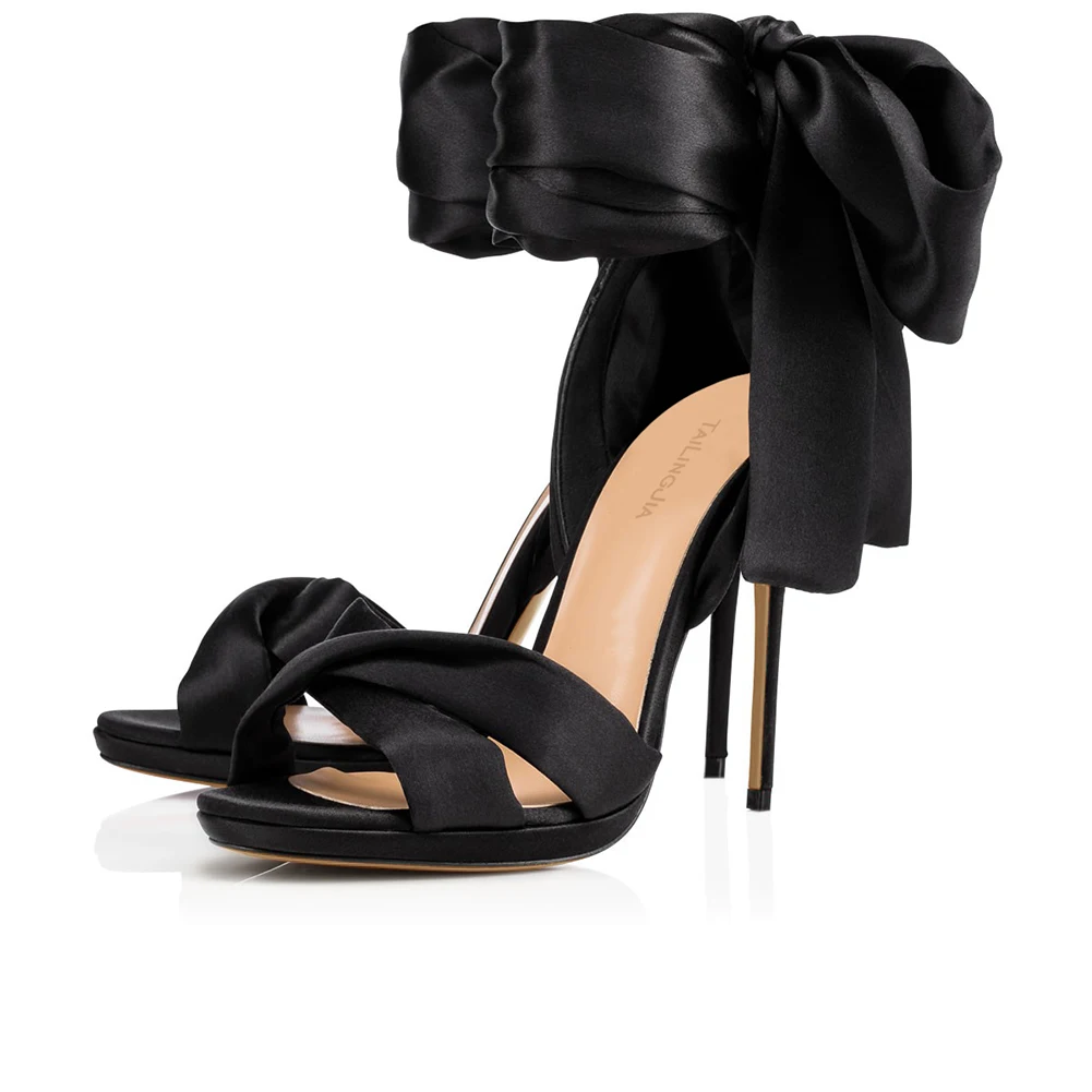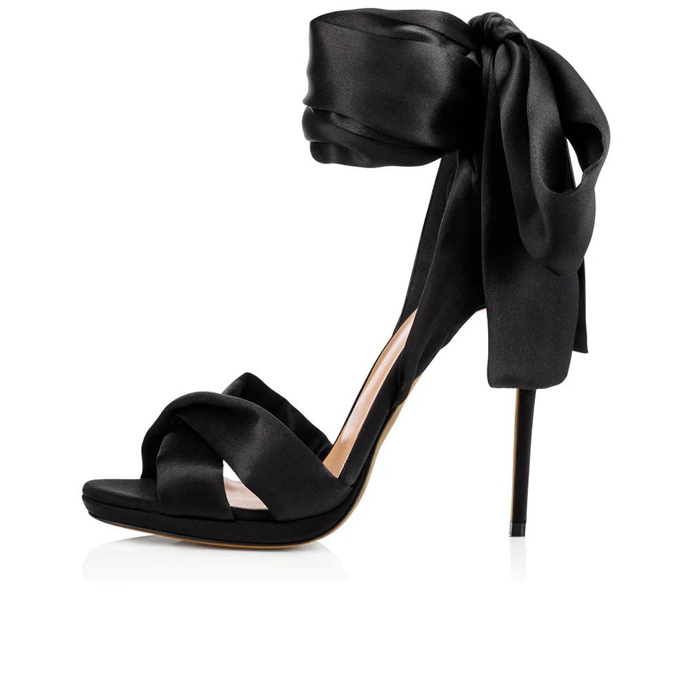 Ladies Red Dress Heels Summer Thin Heel Platform Wrap Shoes Sexy Lady Elegant High Heeled Dress Shoes Black Satin Sandals Women