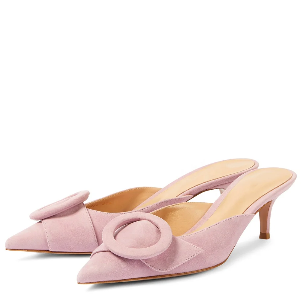Pink Half Cut Green Kitten Heels Shoes With Buckle Strap Mules for Women Supplier