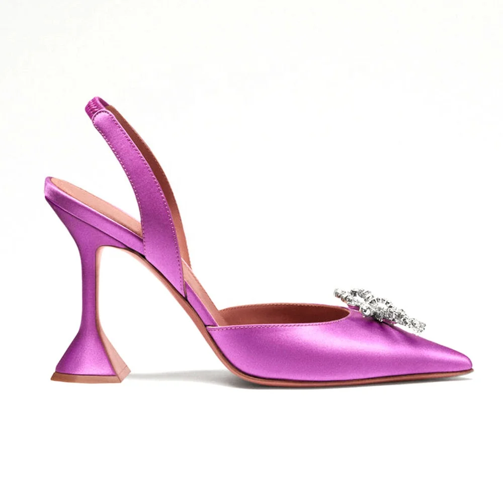 Crystal Embellished Satin Sparkle Bow Closed Toe Sandals Black Sling Back Heels