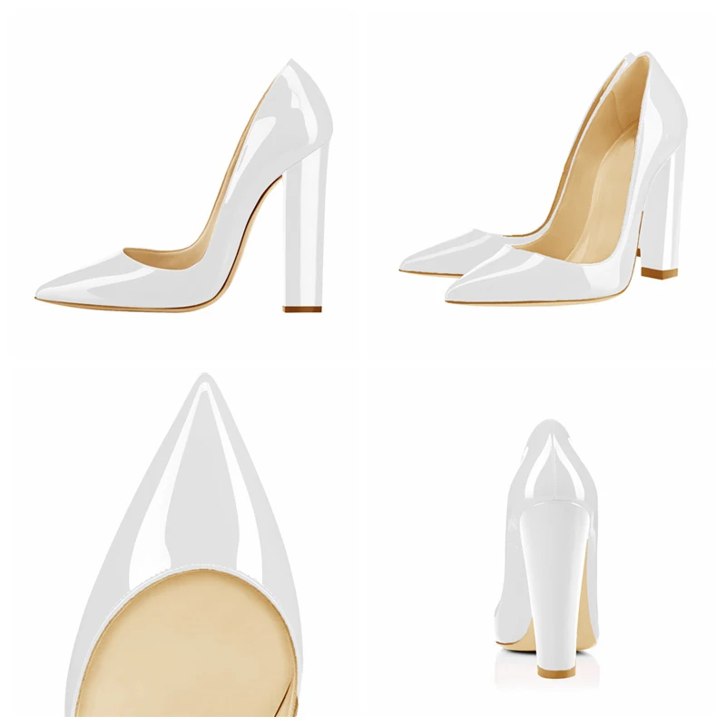Women's Pointed Toe Red Patent Leather Chunky Heel Party Dress Shoes High Heel Pumps for Ladies Big Size Dance Shoe