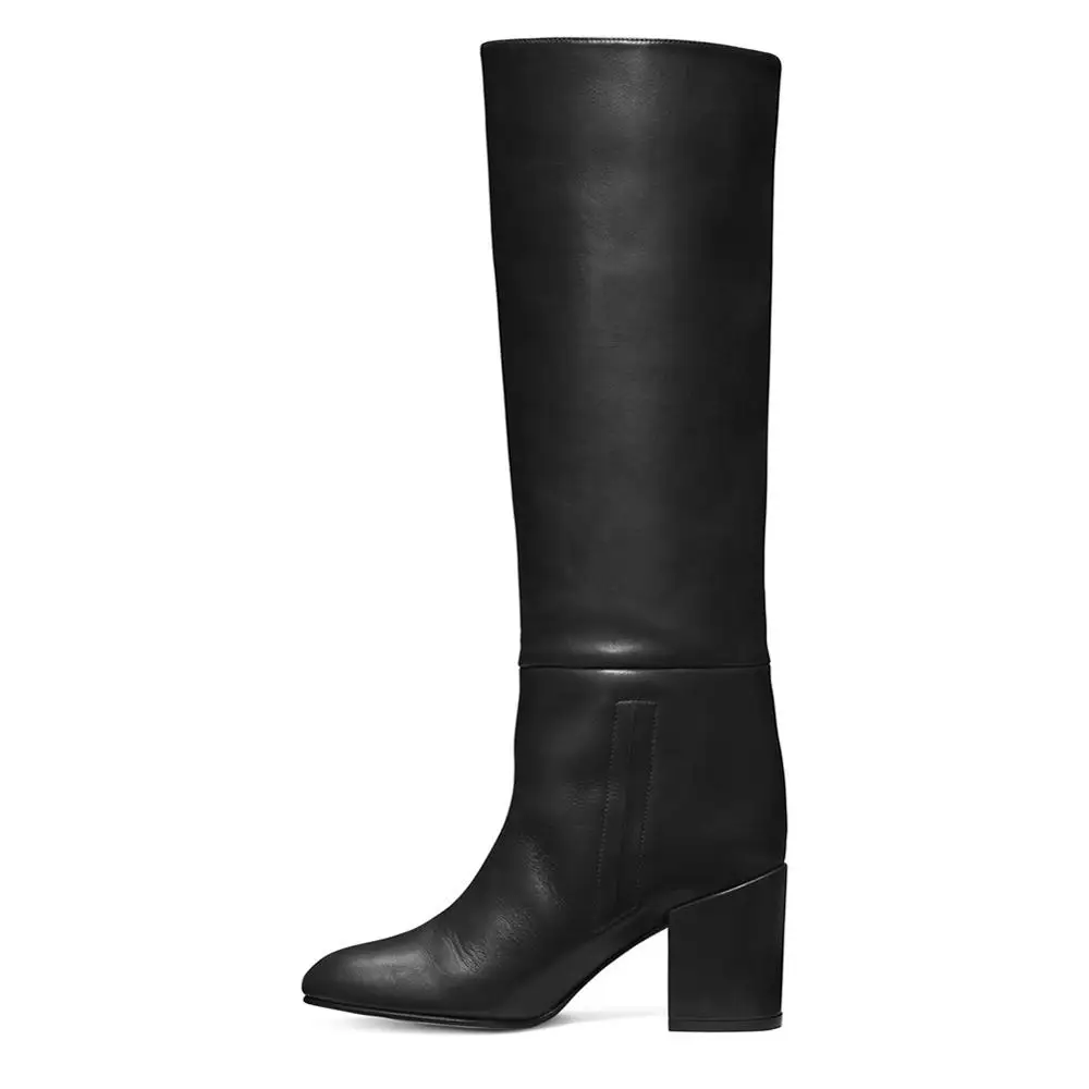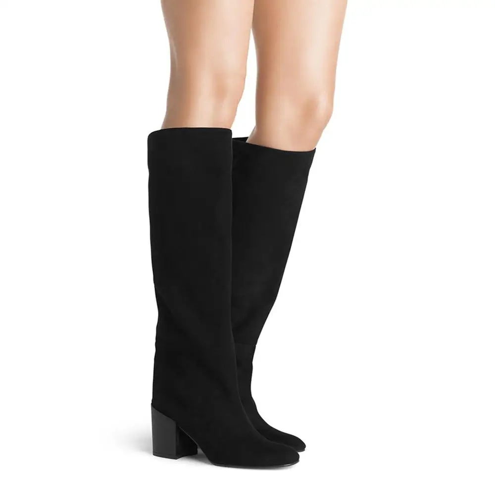 Women's PU Leather Suede Block Chunky Heel Winter Knee High Long Boots