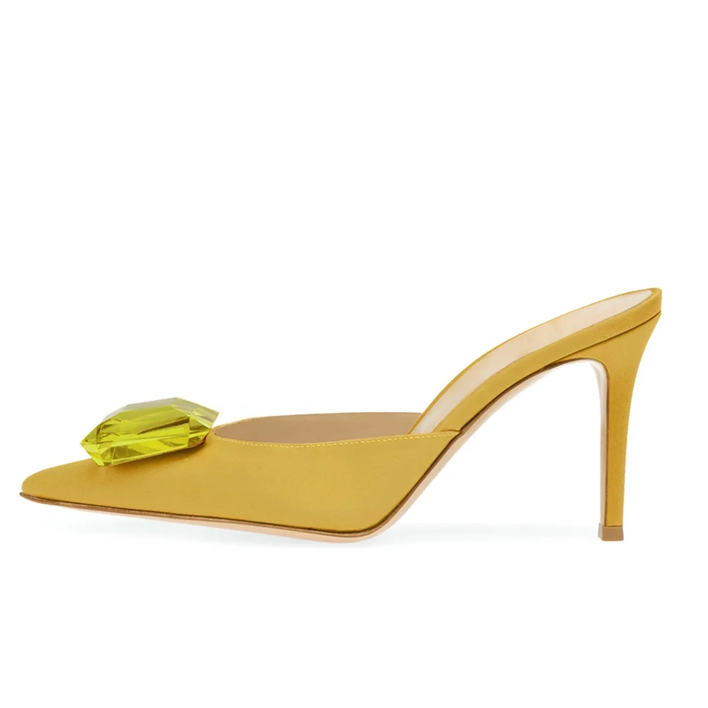 Custom Luxury Diamond Slip on Closed Toe Heel Sandals Women Stoned Half Shoes Pump Mules 2023