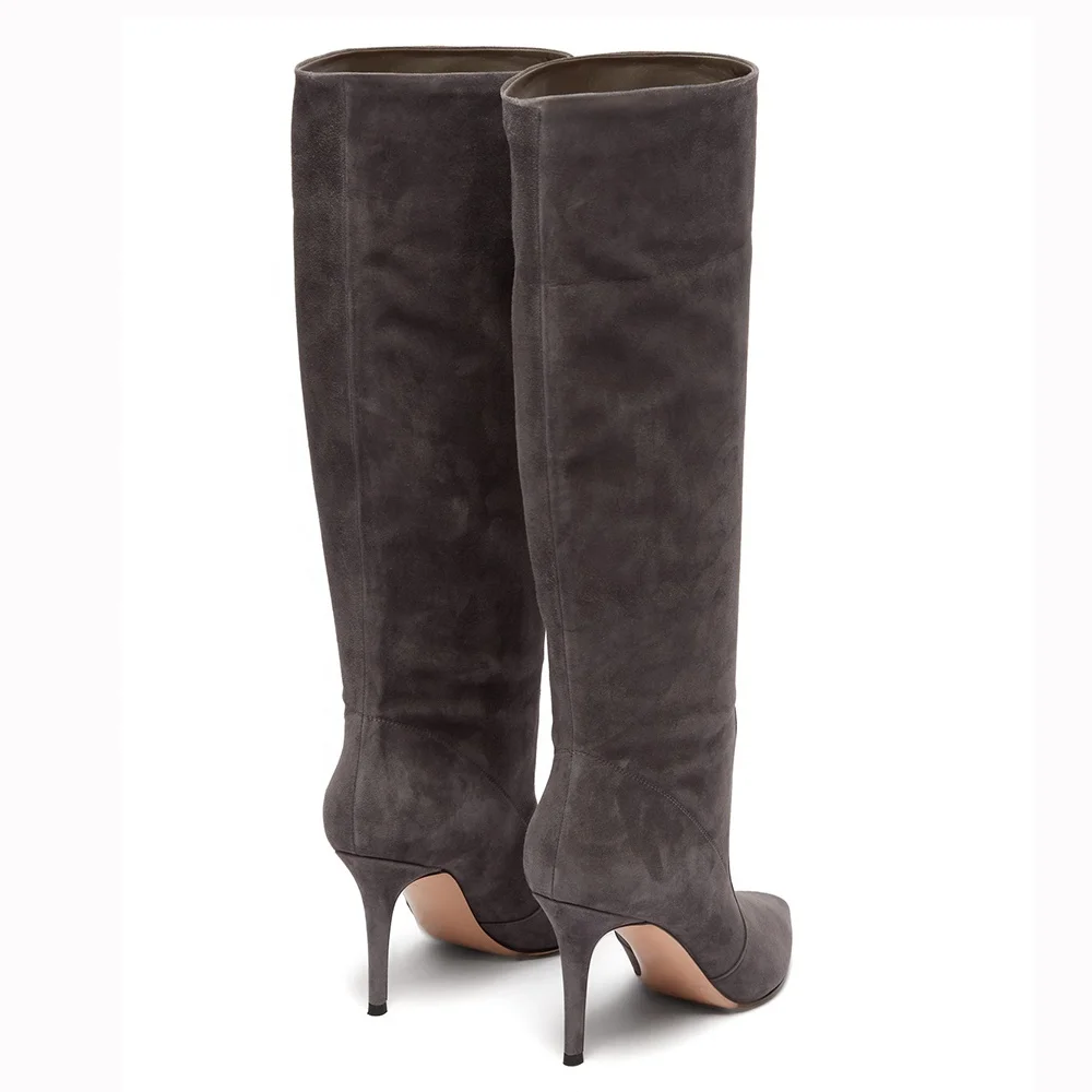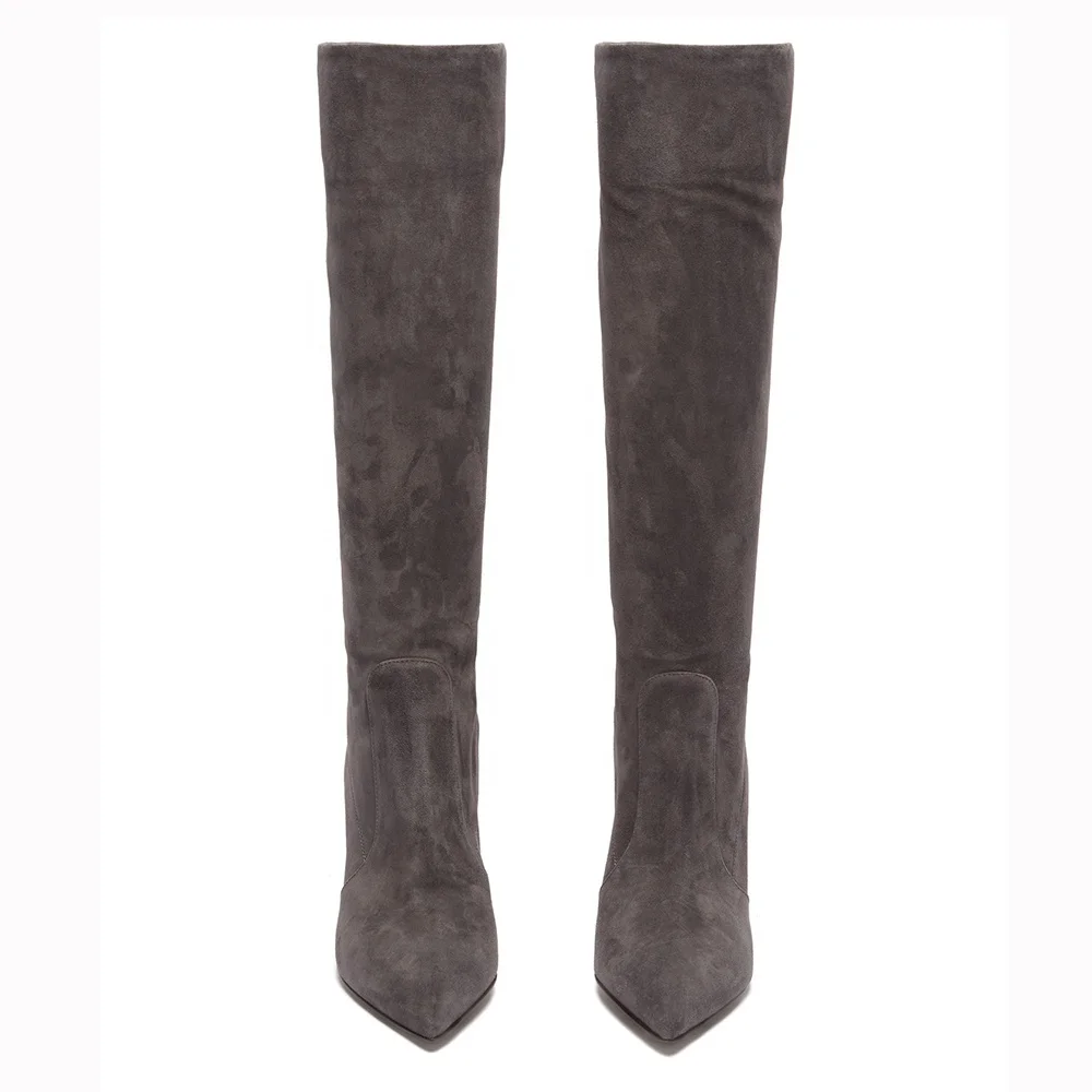 Pointed Toe Winter Shoes 2019 Brown Women High Heel Knee Boots