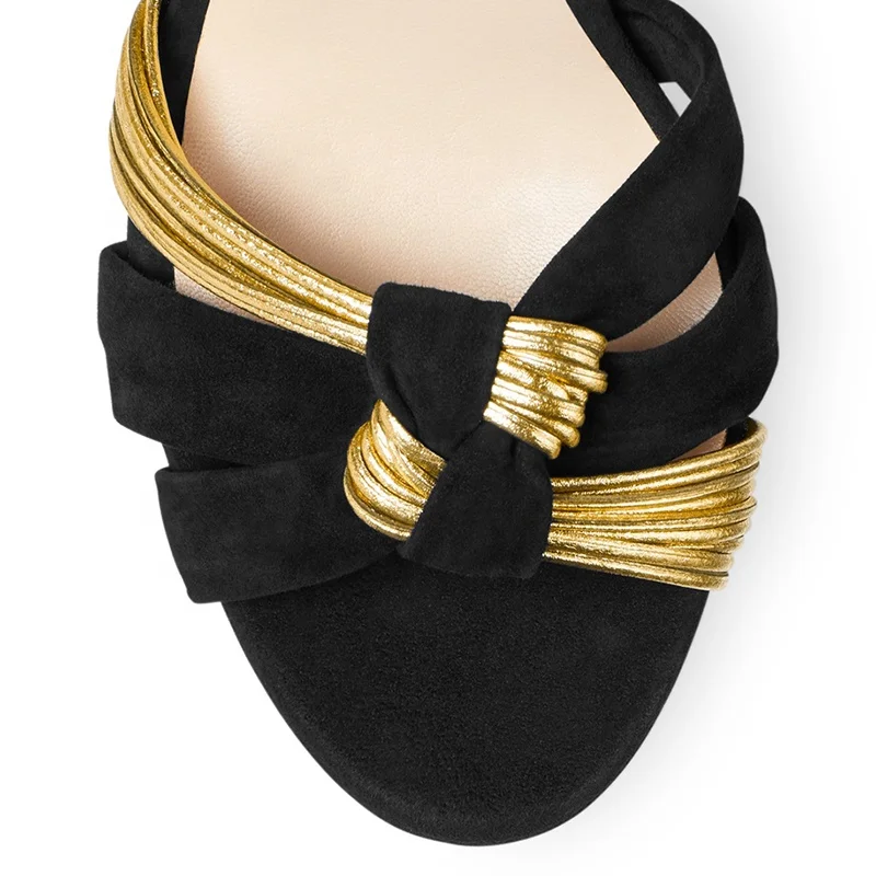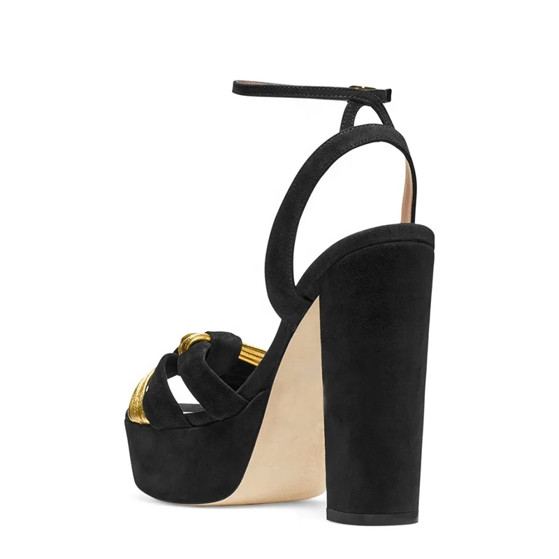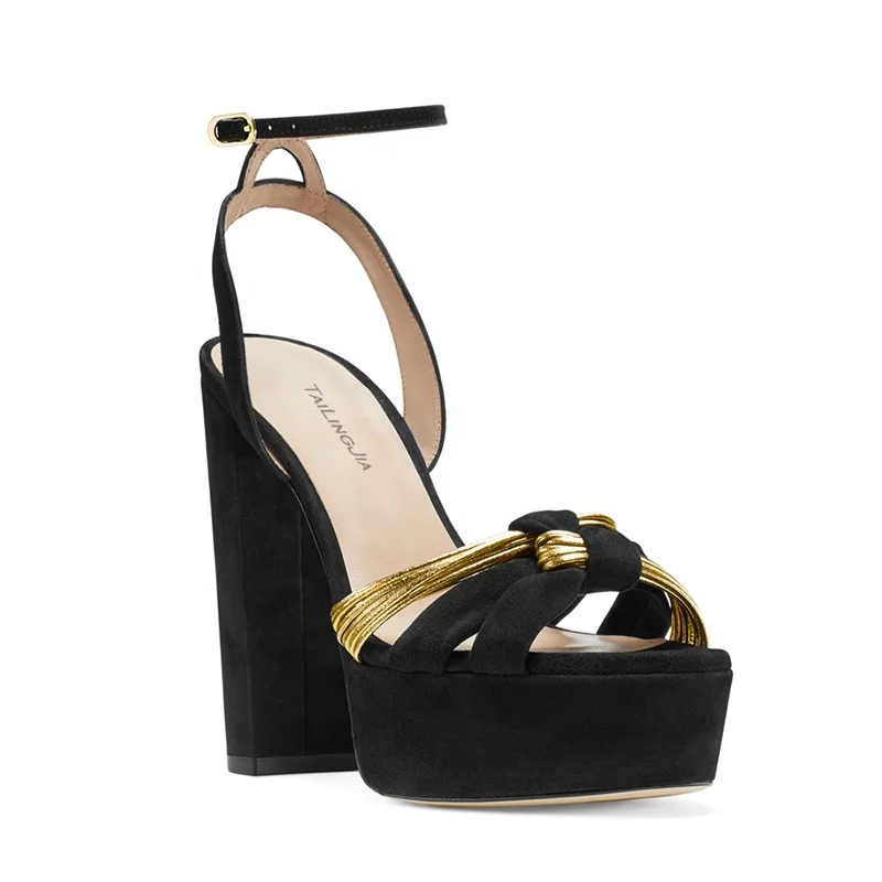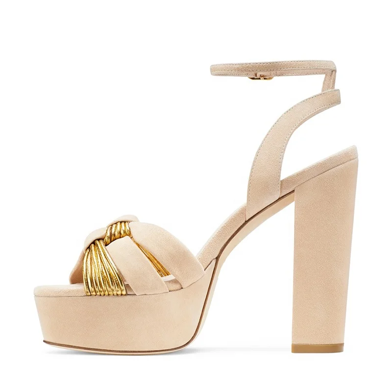 Custom Private Label Ankle Strap Knotted Strappy Platform Chunky Heel Ladies High Heels Dress Sandals