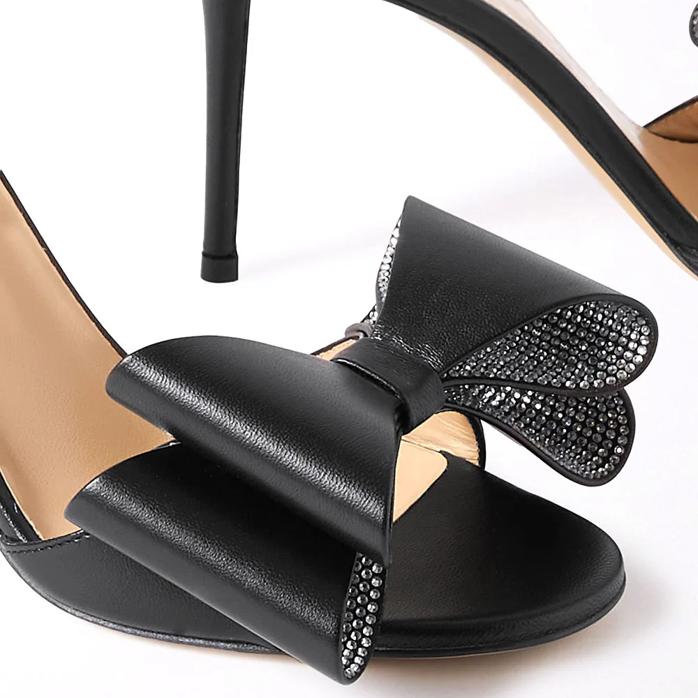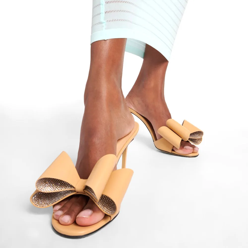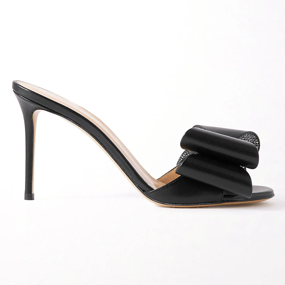 Open Toe High Heel Mules With Bow Slippers and Sandals Ladies Heeled Slippers