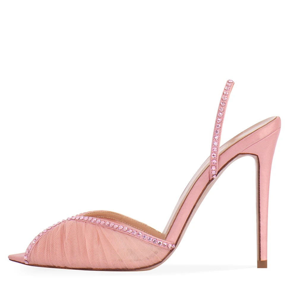 Trending Ladies Shoes 2026 Nude Pink Purple Mesh Slingback Stiletto Sandals