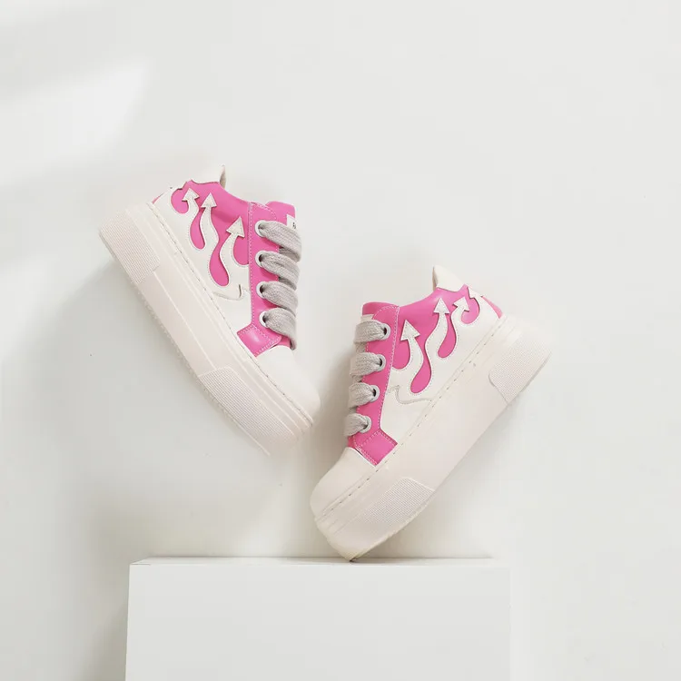 2026 New Flame Shoes Classic Skateboarding Shoes Fashion Women's Thick Bottom Lace Outdoor Casual Sports Shoes