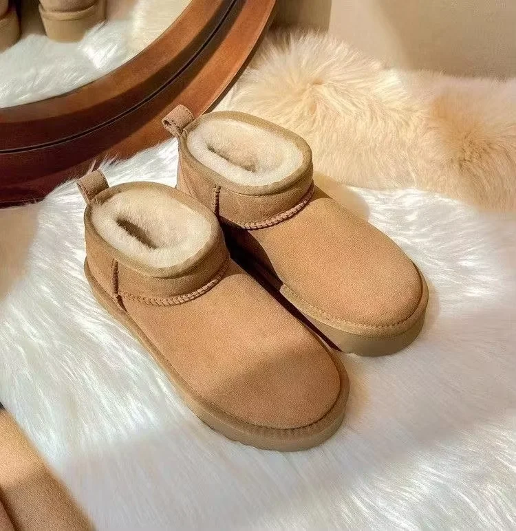 2026 New Custom Women's Shearling Mini Winter Snow Boots Warm Wool Ankle Boots with Platform for Winter Weather