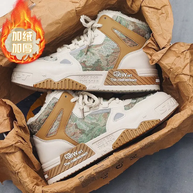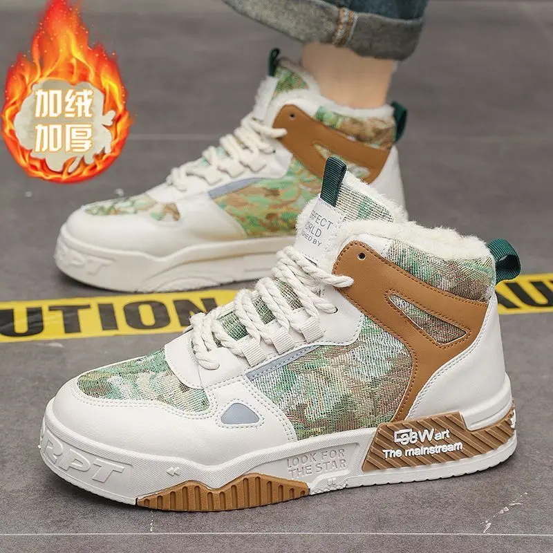 2026 Winter Men's High Top Board Shoes with Velvet Daily Wear Mesh Lining for Spring Season