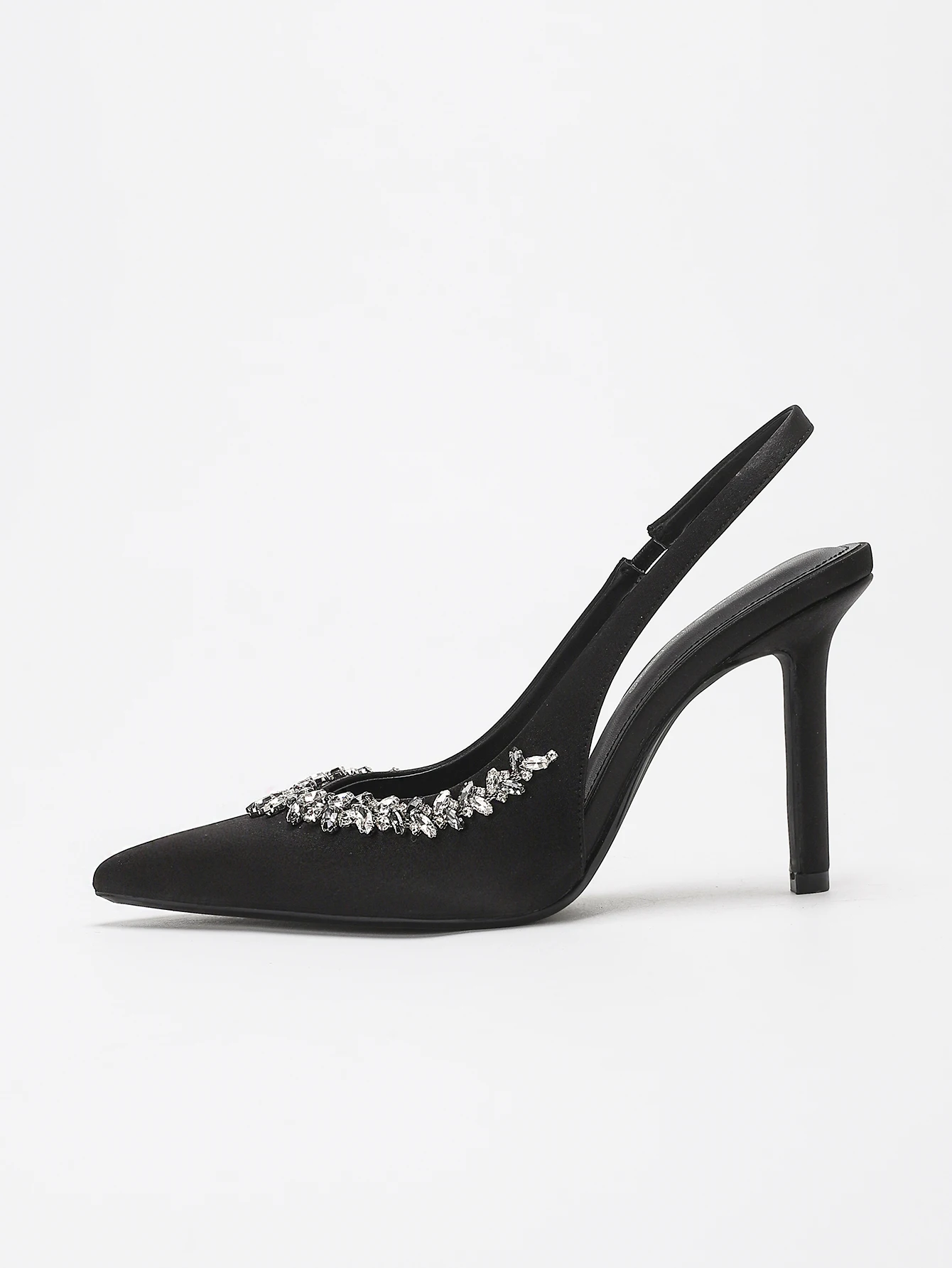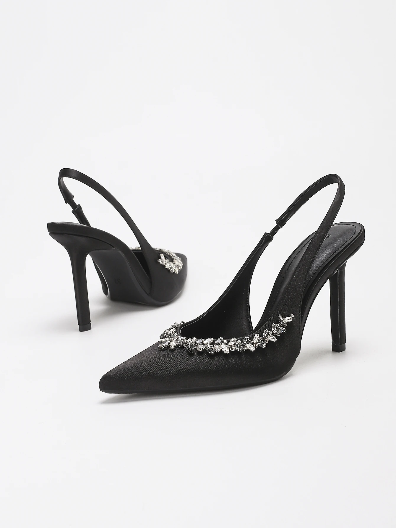1211-40 Luxurious Designer Black Summer Women's High Heel Sandals Pointed Toe High Top with Anti-Slip Feature Water Diamond