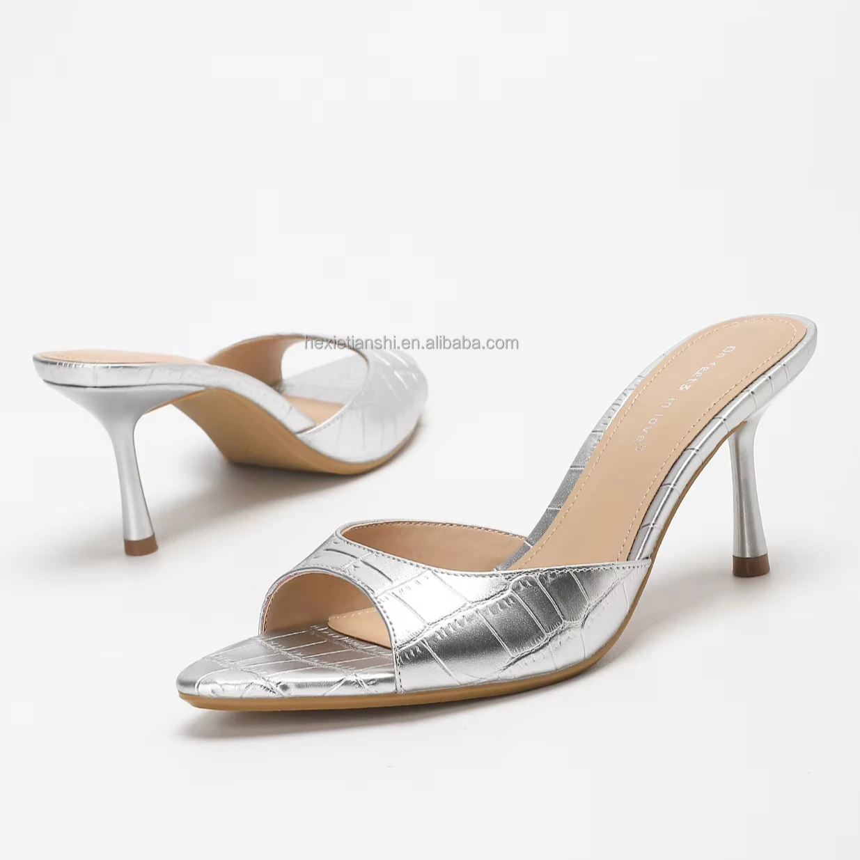4302A-17Silver Fashion Heeled Slipper for Lady Sexy Open Toe Breathable Stone Pattern Lightweight Outdoor Club for Summer Party