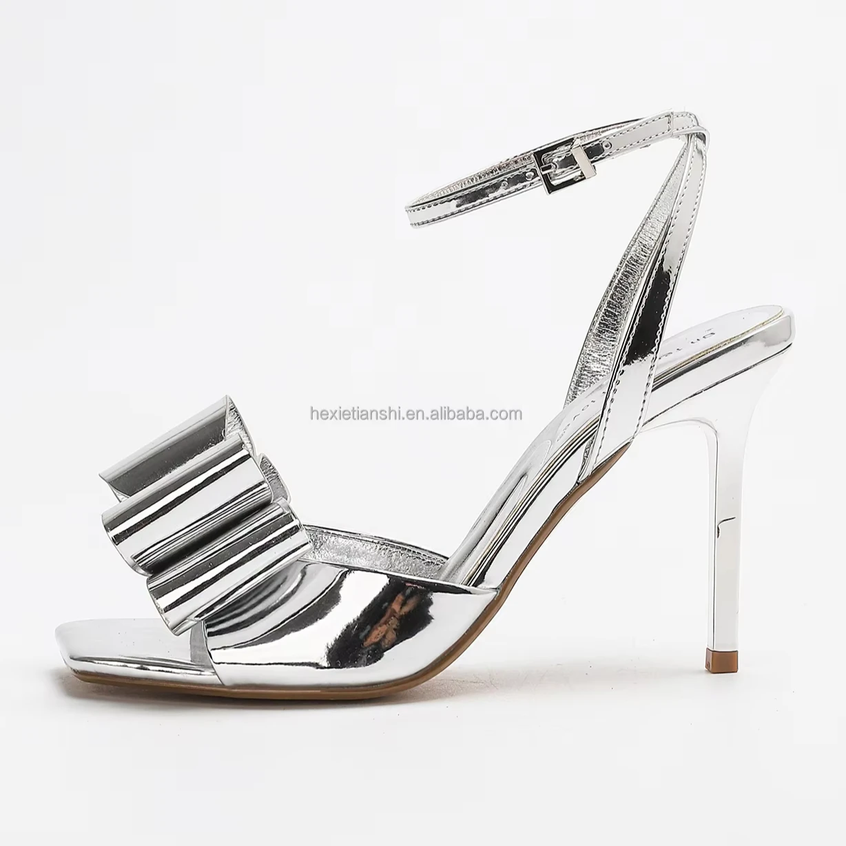 4305-2 Elegant Summer Fashion Square Toe Women's Sandals Silver Bow Decor Sexy Outdoor Thin Sandals