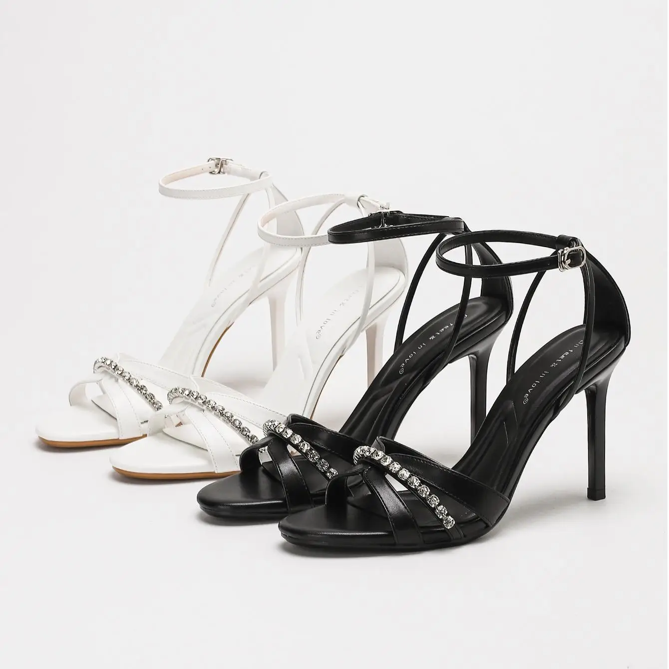4303-10 Wholesale Elegant Strap Sandals Women Dress High Heels Shoes Open Toe Rhinestone Thin Heel Sandals for Ladies