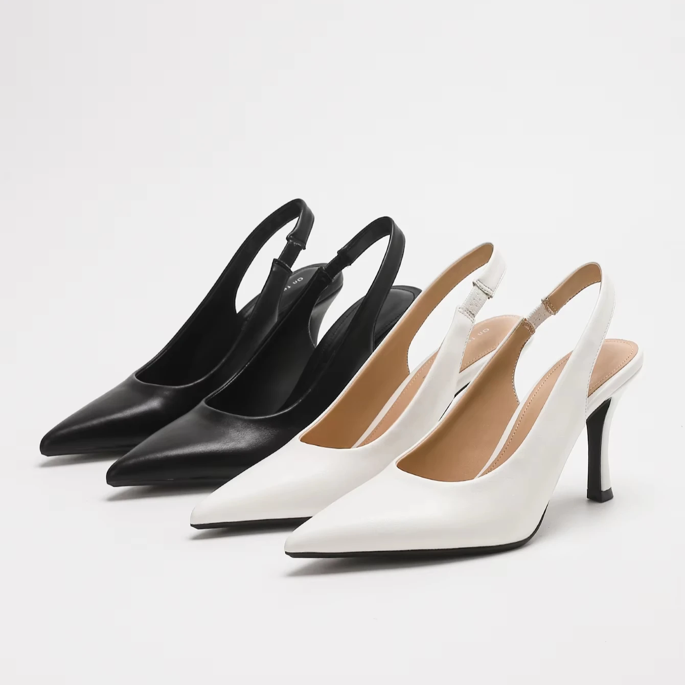8503-33 Simple Fashionable Mid High Heels Women Shoes Pointed Toe Slingbacks Sandals Solid Color Heeled Sandals with Thin Heel