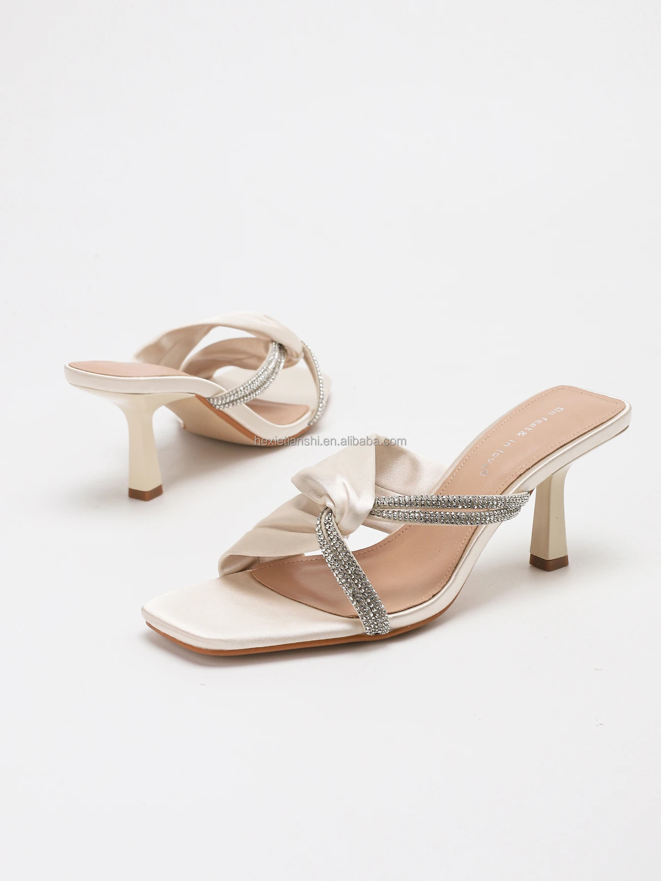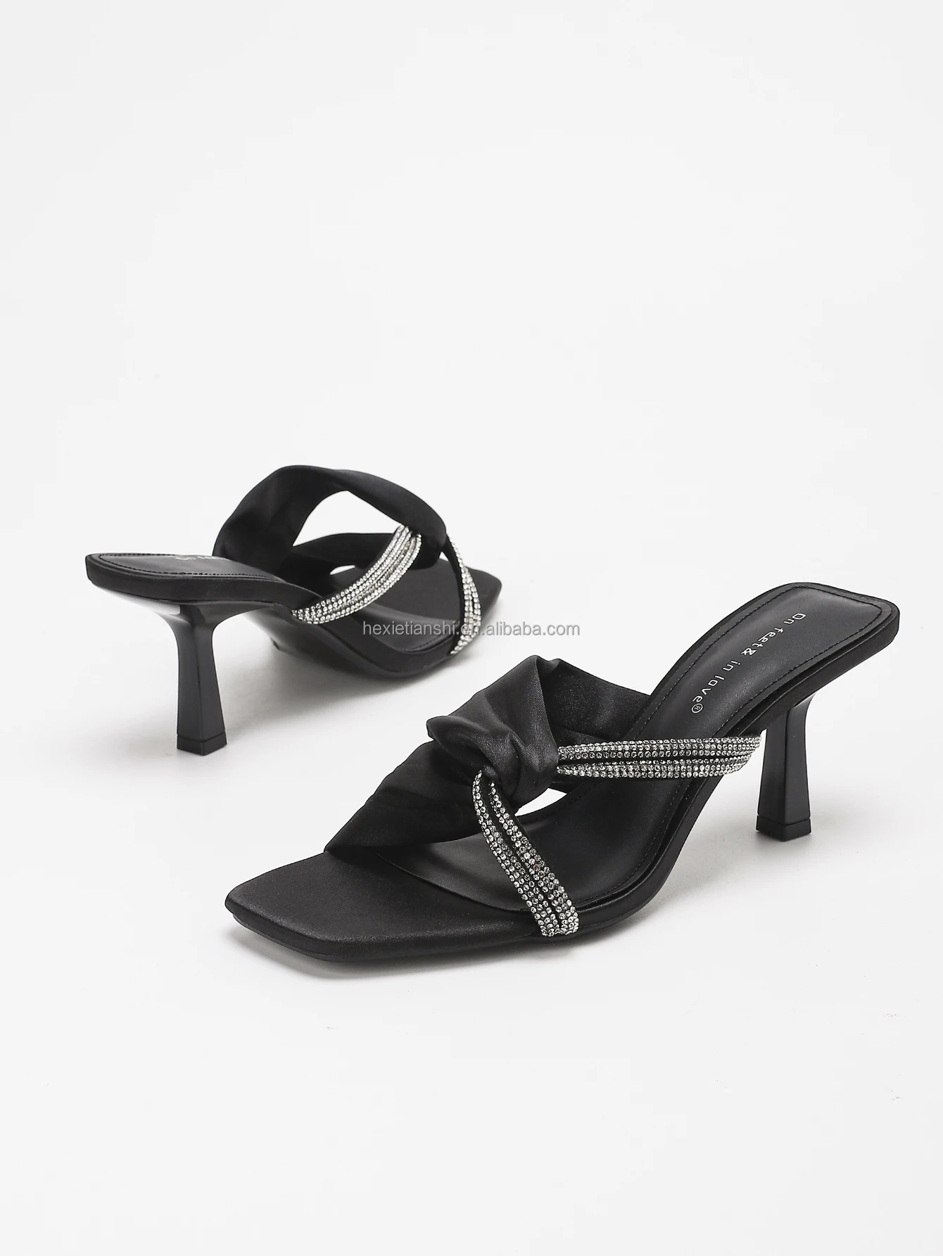 1828-4 Summer New Style High Heels Sandals Hot Sale Sexy Silk Cross Water Diamond Square Toe Outdoor Open Back Height Increasing