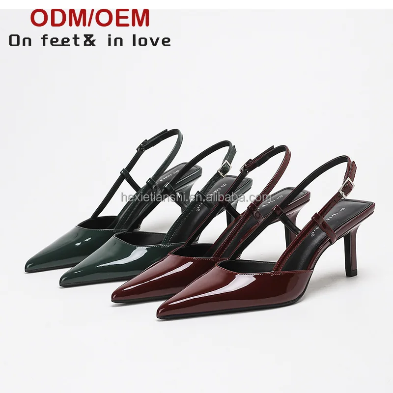 1208-1Custom Women Shoes High Quality Summer Simple Fashion Style Pointed Toe Buckle Strap Slingbacks Shoes for Lady