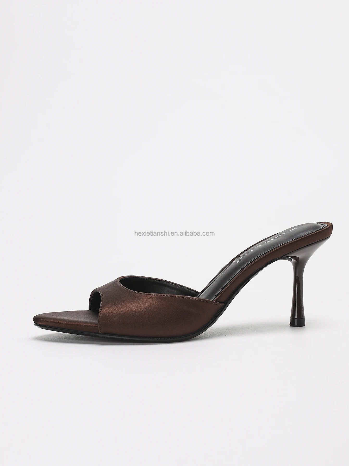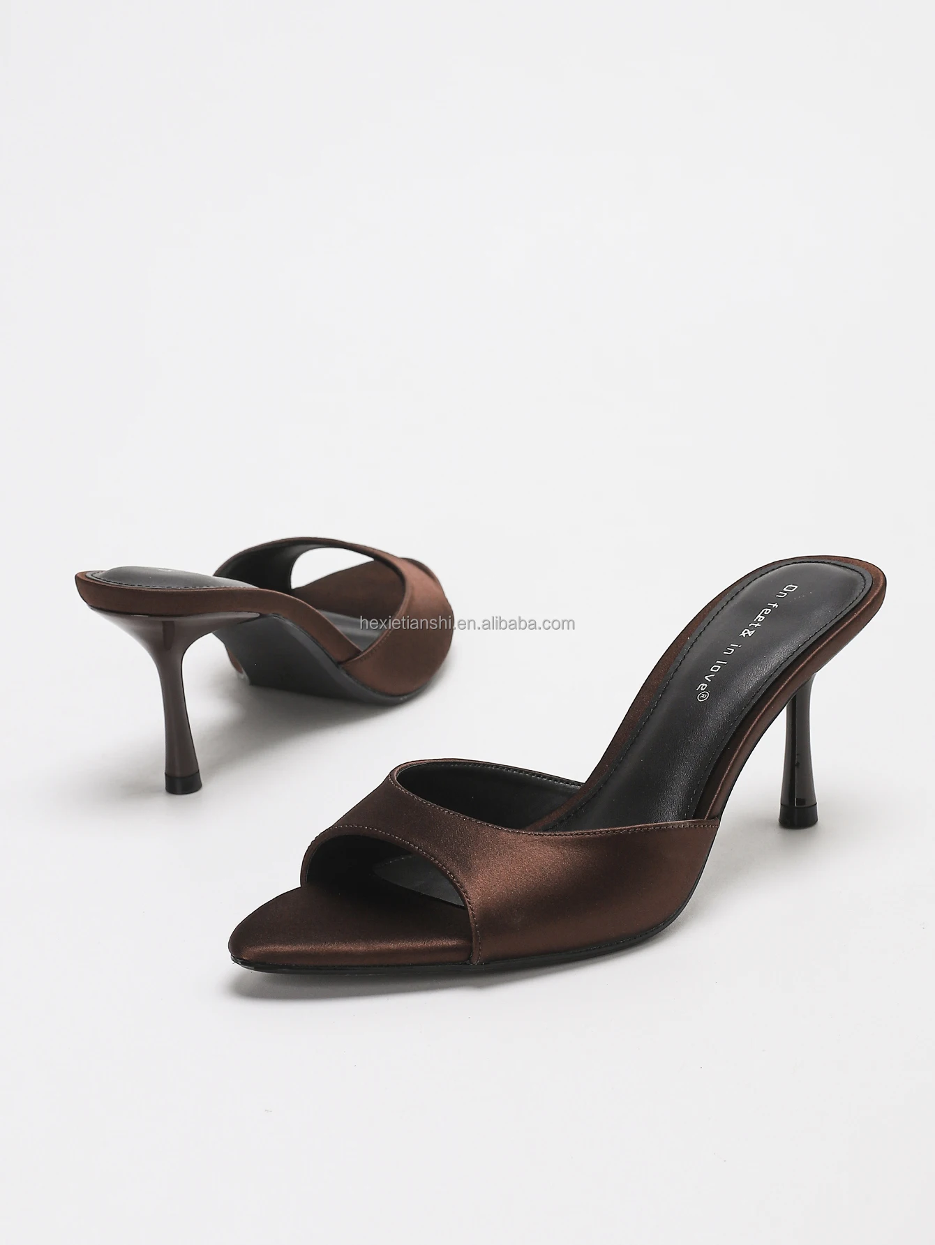 4302A-17 NEW Style Women's Comfortable 7.5cm Low Heel Sandals Open Toe Satin Slippers for Daily/Office Wear Spring