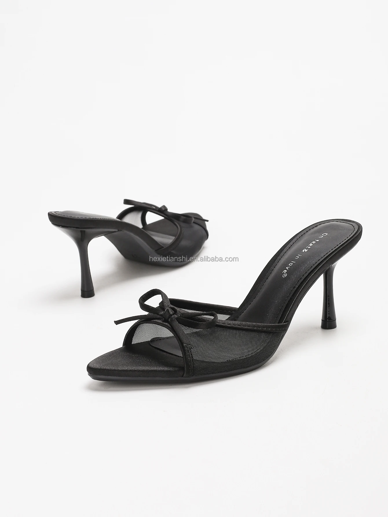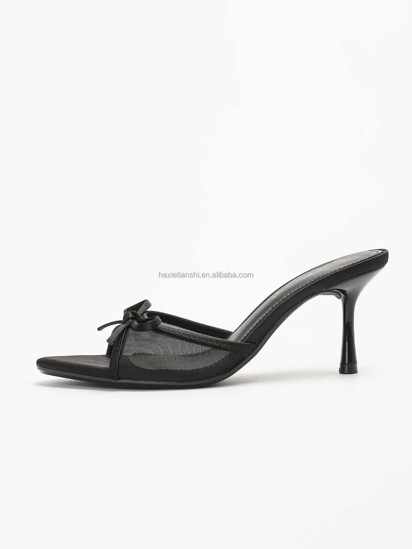 4302A-65 Summer Breathable Sexy High-heeled Sandals Fashionable Black Lace Bow Decor Women Mule slippers