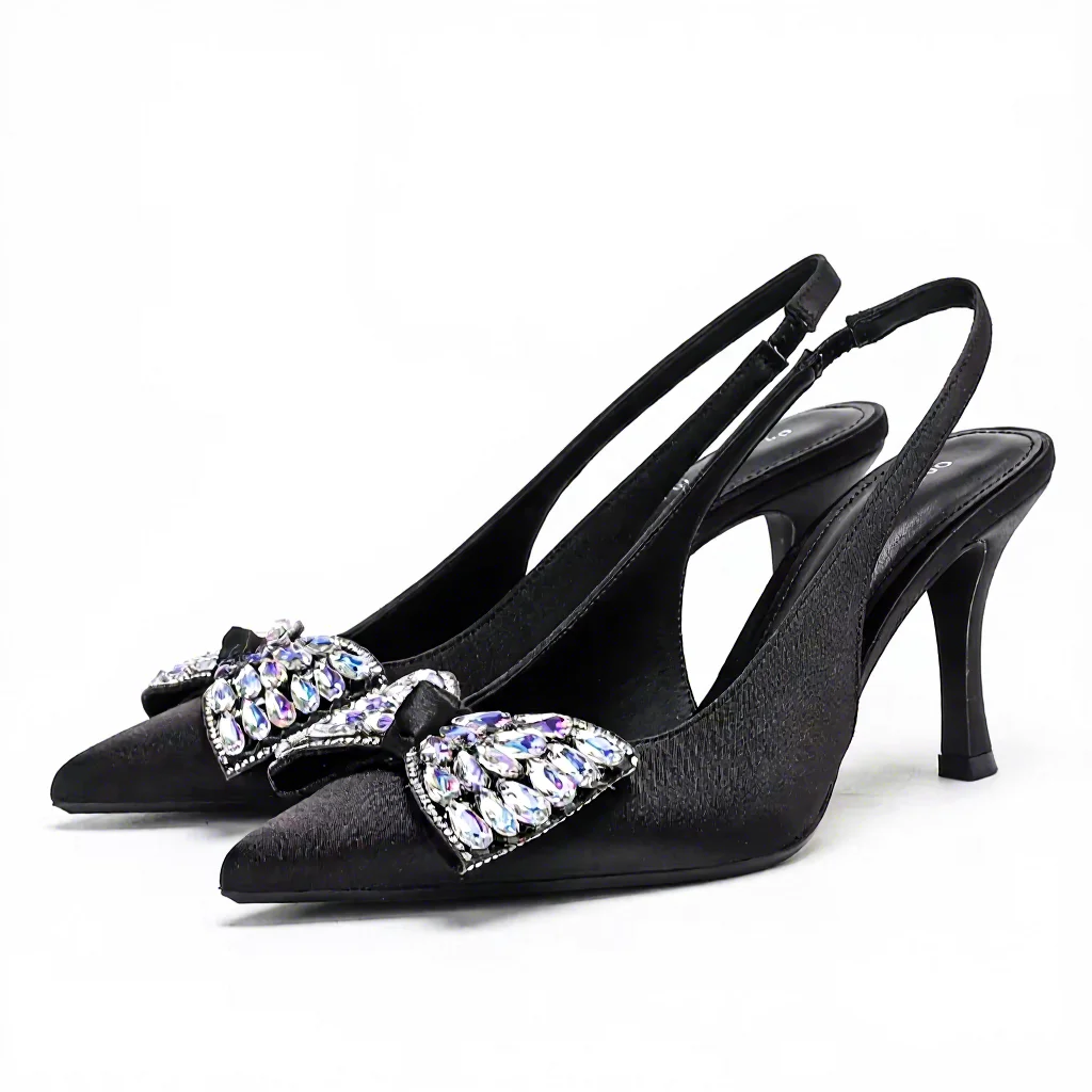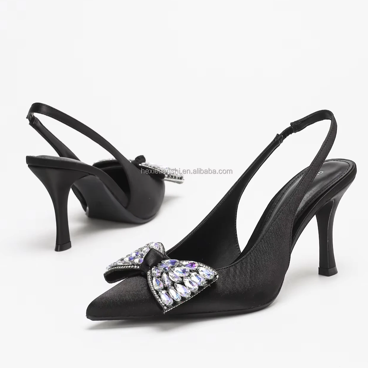 8503-37 Hot Selling Fashion Elegant Pointed Toe Bow Rhinestone High Heeled Sandals Ladies Sandals Women Banquet Dress High Heels