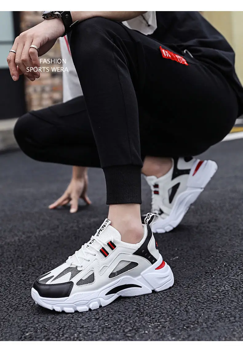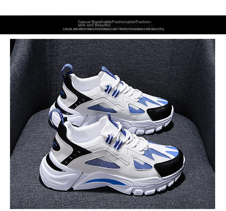 Men's Casual Shoes Breathable Thick-soled Mesh Lightweight Trendy Sneakers Artificial PU Upper Tie Closure