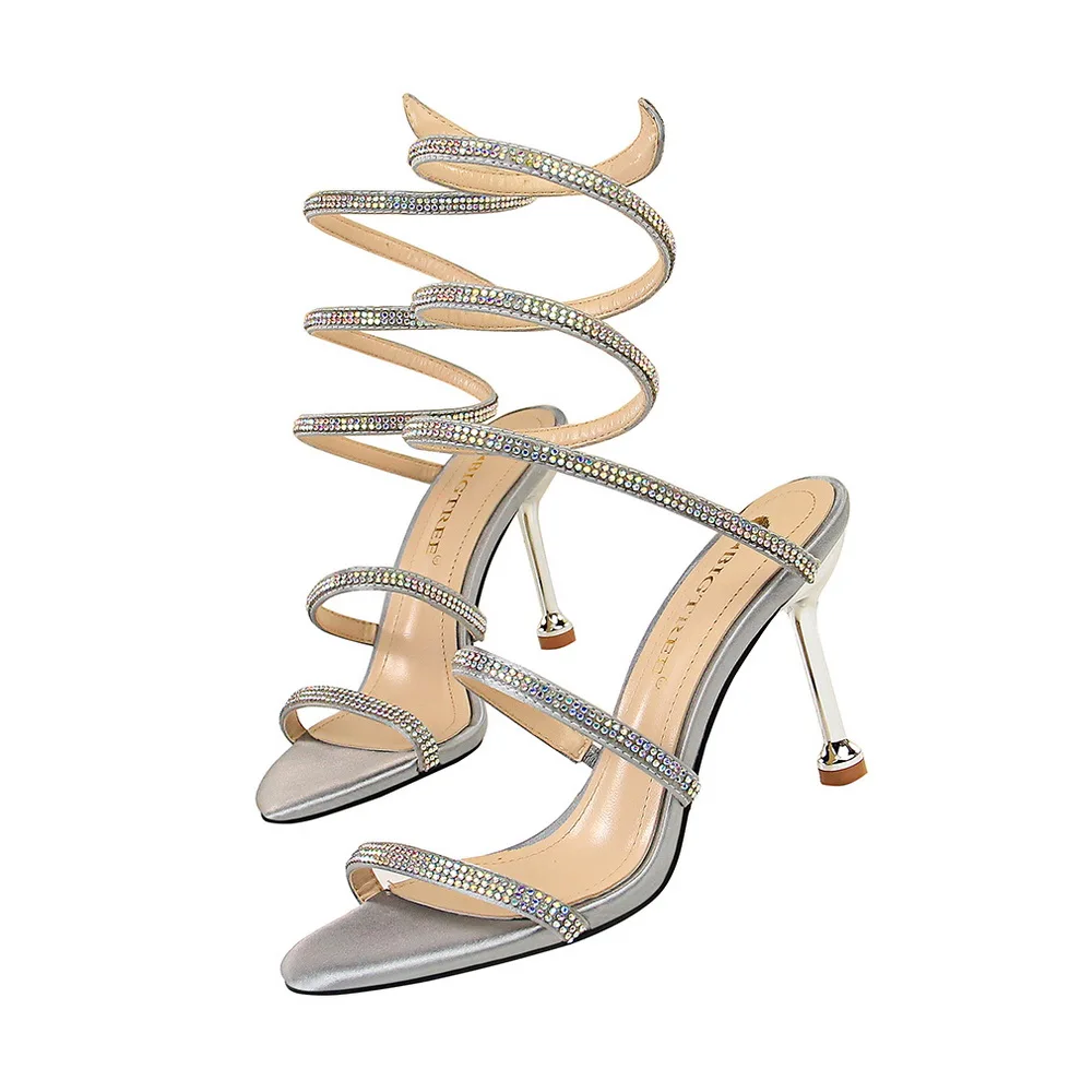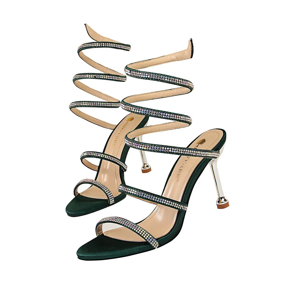 Rome Woman Open-Toe Sandals Sexy High Snake Straps 8cm Stilettos Breathable Ankle-Style Prom Wedding Pumps Fashionable